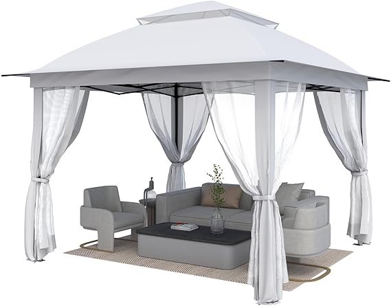 Gazebo Pop Up with 4 Sidewalls Mosquito Netting, Heavy Duty Patio