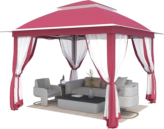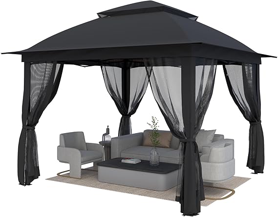 - Sturdy and Durable Construction: Built to last, our gazebo features a robust steel frame with a powder-coated finish that resists cracking, rusting, and corrosion. The upgraded support poles and connectors ensure stability and reduce wind impact. The slight outward splay of support legs after assembly is normal and adds to its stability. (Package includes stakes and ropes for anchoring purposes)