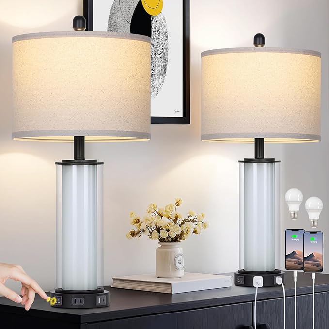 Table Lamps Set of 2, 3-Way Dimmable Touch Control Glass Lamps for Living Room
