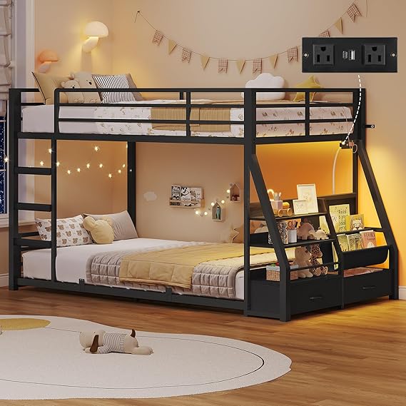 - Floating Power Hub: The kids bed comes with a suspended power outlet. Two AC outlets, USB-A, and USB-C keep devices juiced up without cluttering the floor. Kiddo in the upper bunk now juice up their devices conveniently now