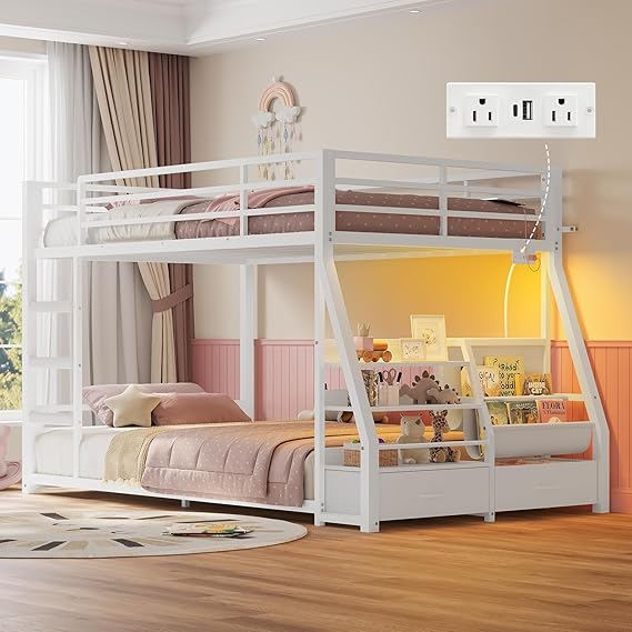 - Space-Saving Magic: This bunk turns any bedroom into a versatile space with 3-tier bookshelf, sling rack and 2 light-weight but durable drawers. Storybooks, stuffies, and PJs stay organized right by the bed. Ideal for siblings sharing a tight bedroom. Say goodbye to bedtime chaos and hello to smooth "5 more minutes, pleeeease" negotiations