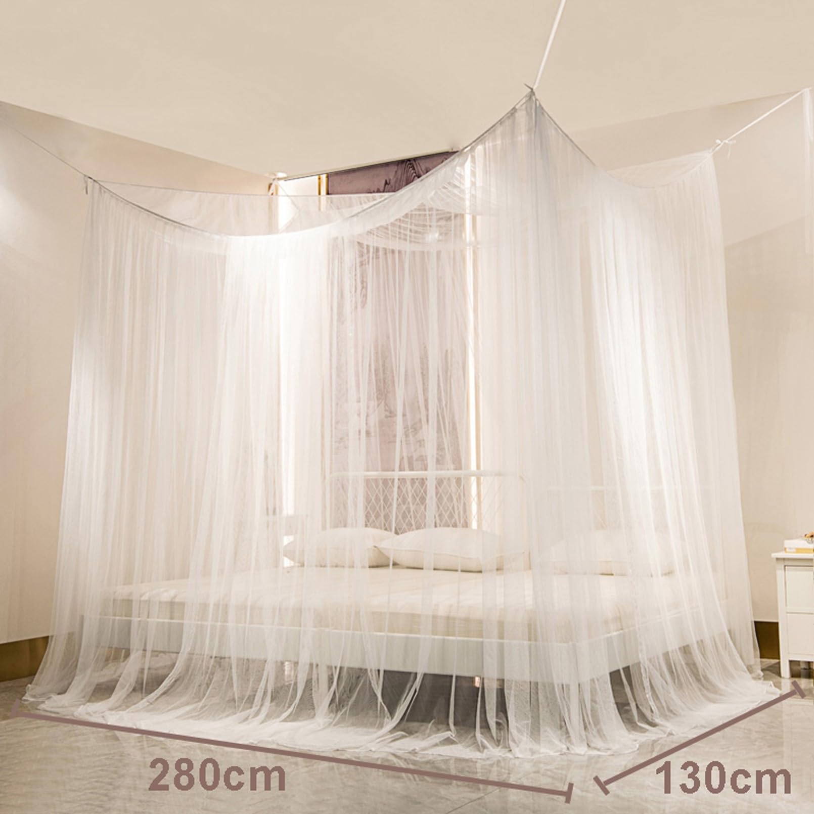 - Extra Large Size: This canopy net is 280 cm long and 130 cm wide; 4 Side Openings. Apply most of beds, including single beds/ twin beds/ full beds/ queen beds/ king beds /cal king beds, patio, camping, outdoor & travel. Store the net in a cool, dry place when not in use.
