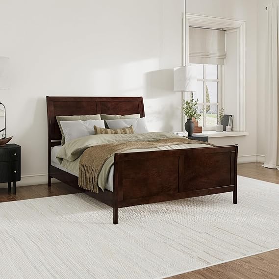 Valencia Queen Solid Wood Low Profile Sleigh Platform Bed with Matching Footboard