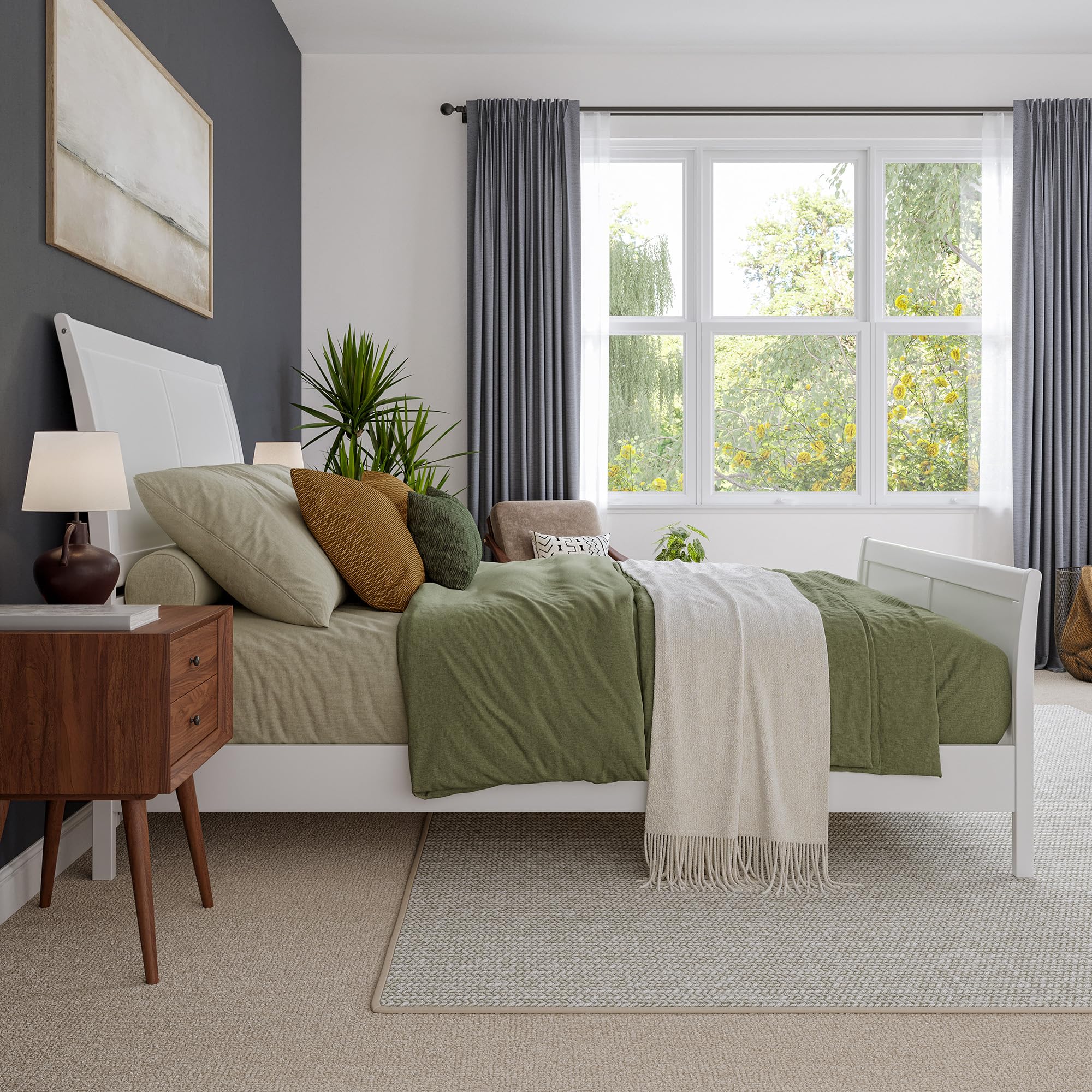 - SLEIGH HEADBOARD: Sleek, curved panel sleigh headboard and matching footboard provide a contemporary style