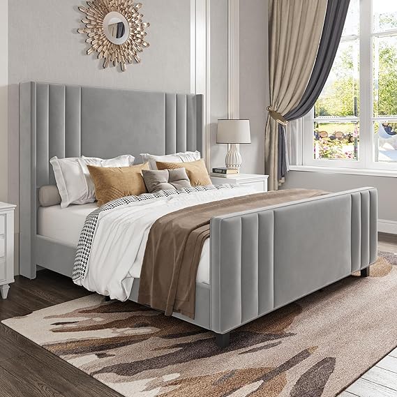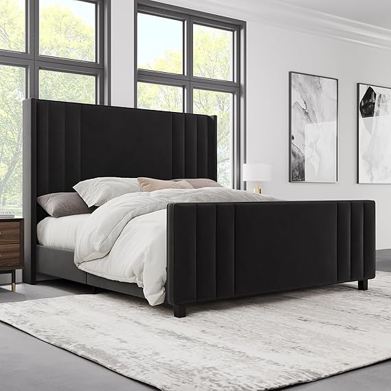 | Special Feature | No Box Spring Needed, 100% premium velvet, Elegant Footboard Included, Channel Tufted Headboard with Wingback See more |