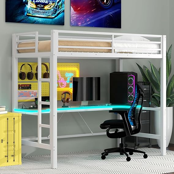 Loft Bed Twin Size with Guardrail and Ladder, Small Space Saving Design for Bedroom