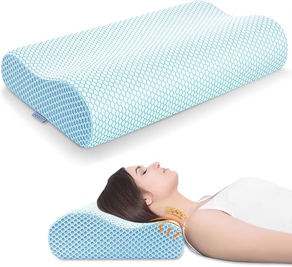 Foam Pillow, Neck Contour Cervical Orthopedic Bed Pillow for Sleeping Side Back