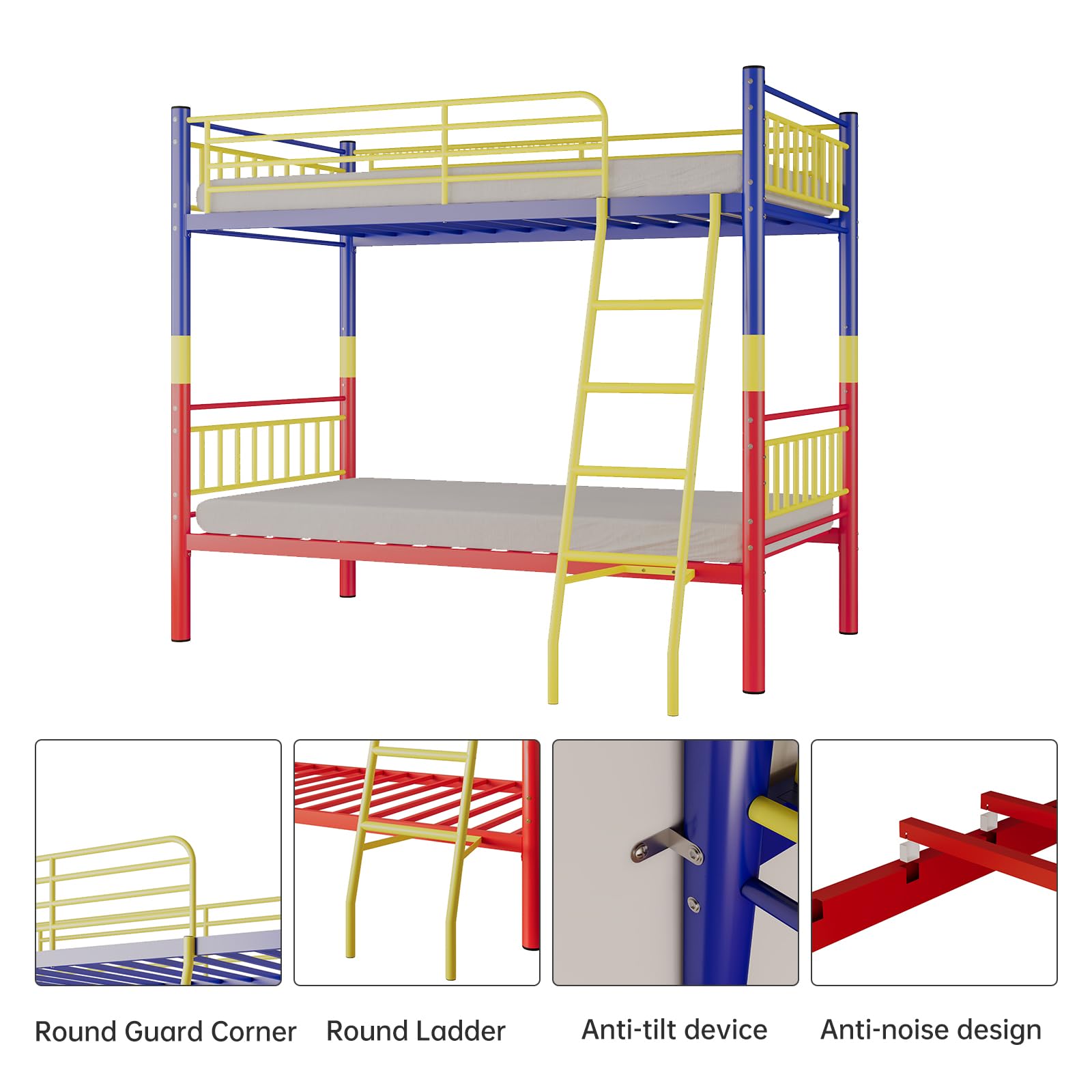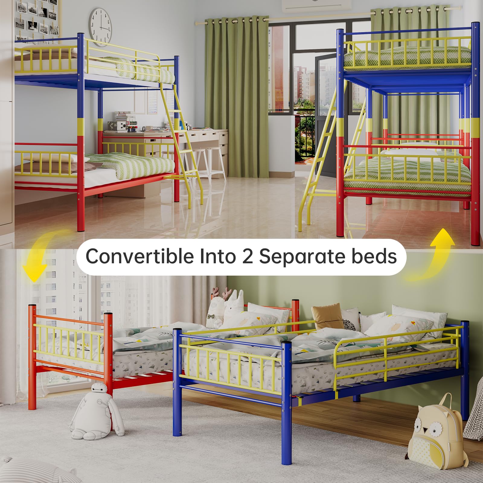- [2-in-1 Convertible Bunk Bed Twin Over Twin ]: The bunk bed can be converted into two separate single beds to meet your different needs. It can be used in workers' dormitories, school dormitories, or as a children's bunk bed. The space-saving design is ideal for bedrooms