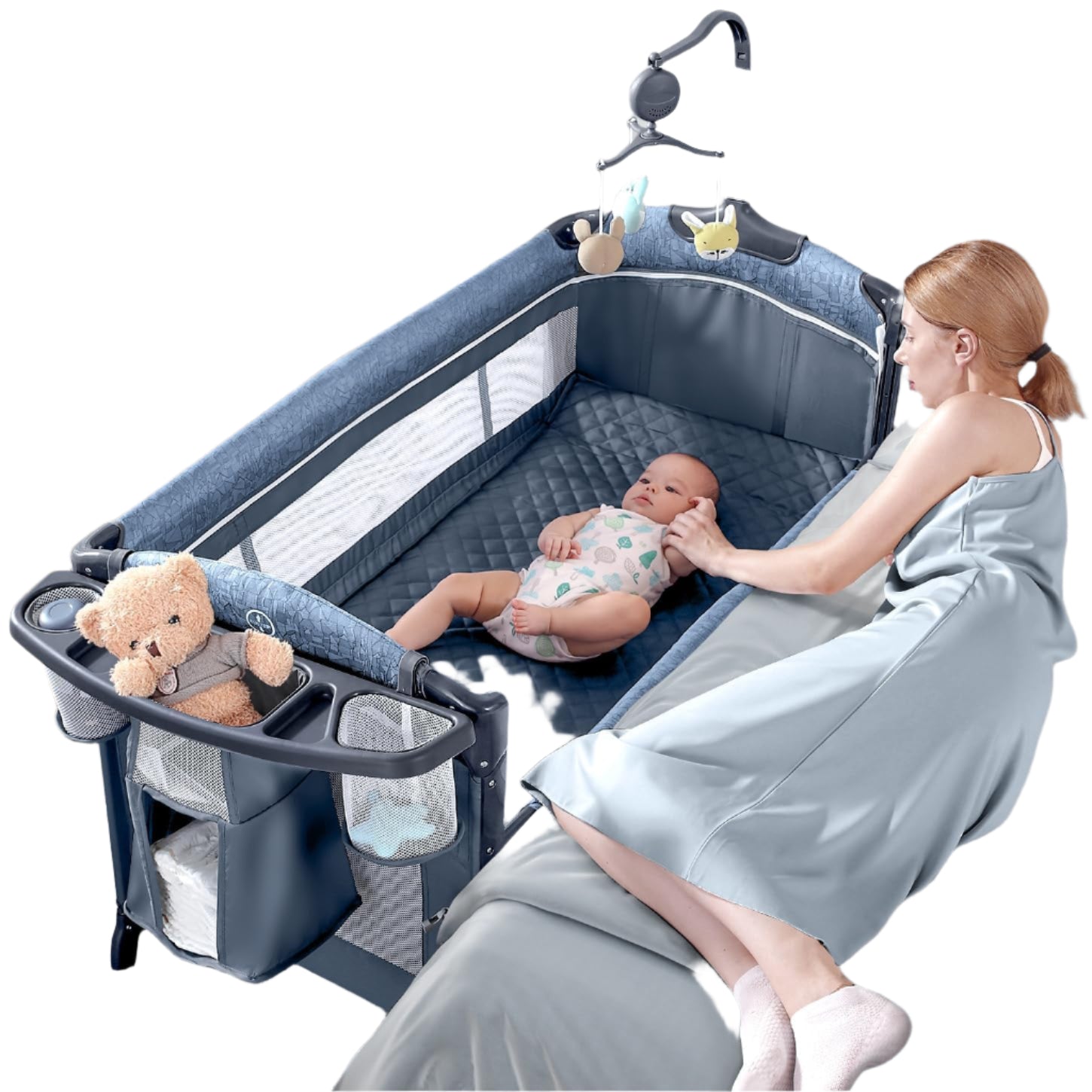 - 5-in-1 Multifunctional Nursery Center: This 5-in-1 portable nursery center can be used as the bedside sleeper, travel crib, separate bassinet, baby playard and diaper changer station, which fully satisfies needs of newborn to infant to toddlers in 0-36 months. New mothers can easily deal with a variety of baby problems and accompany baby's growth