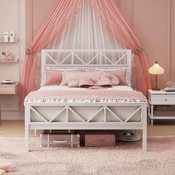 - Embedded Design: This heavy-duty bed frame with headboard and footboard can support any foam or spring mattress, no box spring required, and the embedded design prevents the mattress from sliding