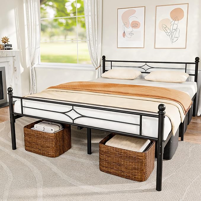 Queen Size Metal Bed Frame with Headboard and Footboard
