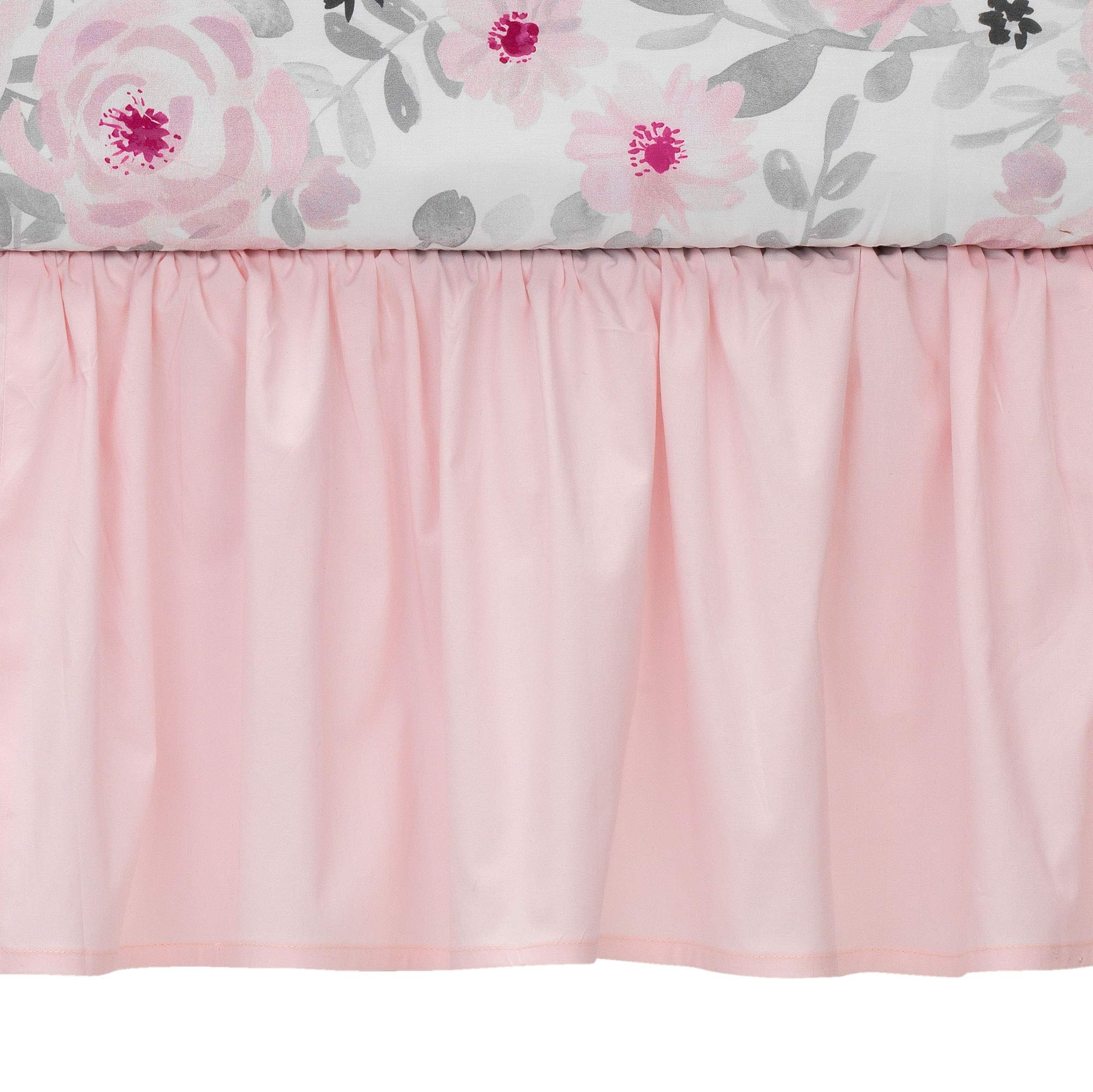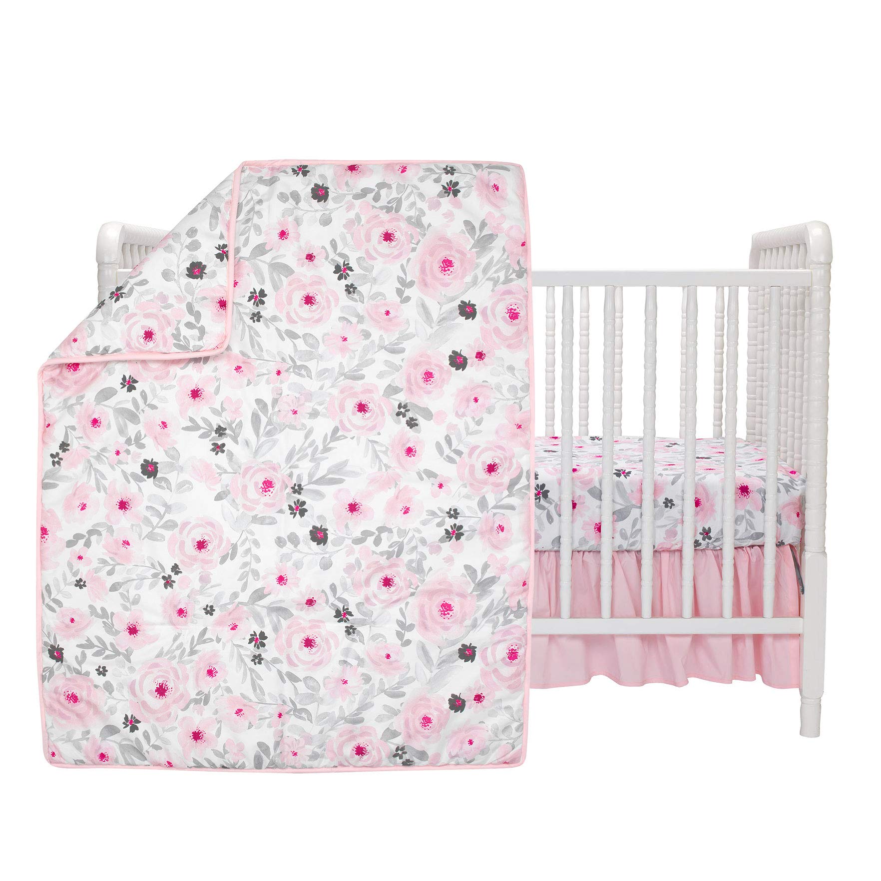 Blossom Pink Watercolor Floral 3-Piece Baby Crib Bedding Set