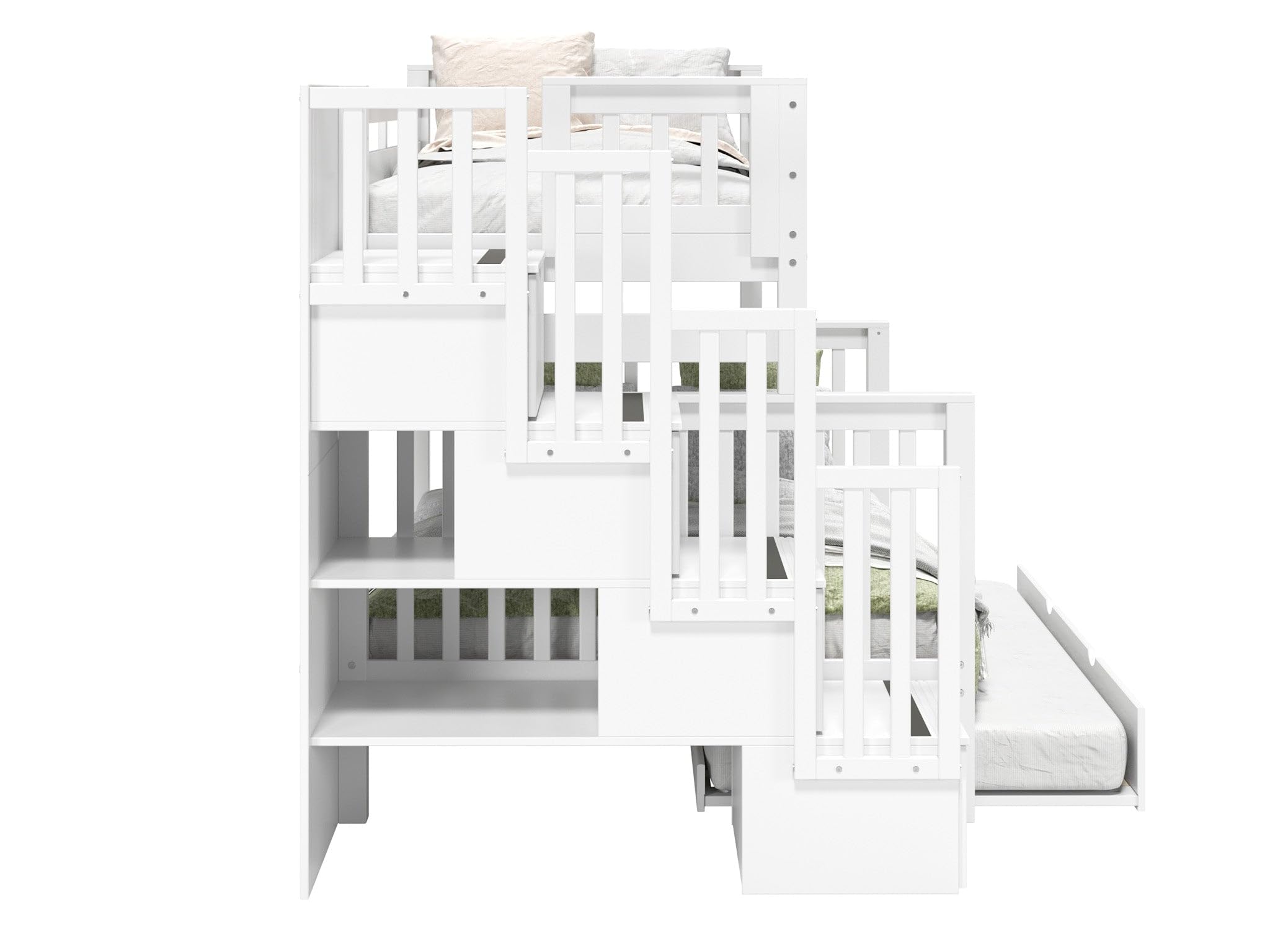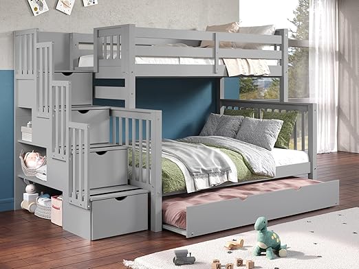 - Built-in Stairway instead of ladder for easy access to the top bunk with 4 drawers built into Stairway and a Twin Trundle