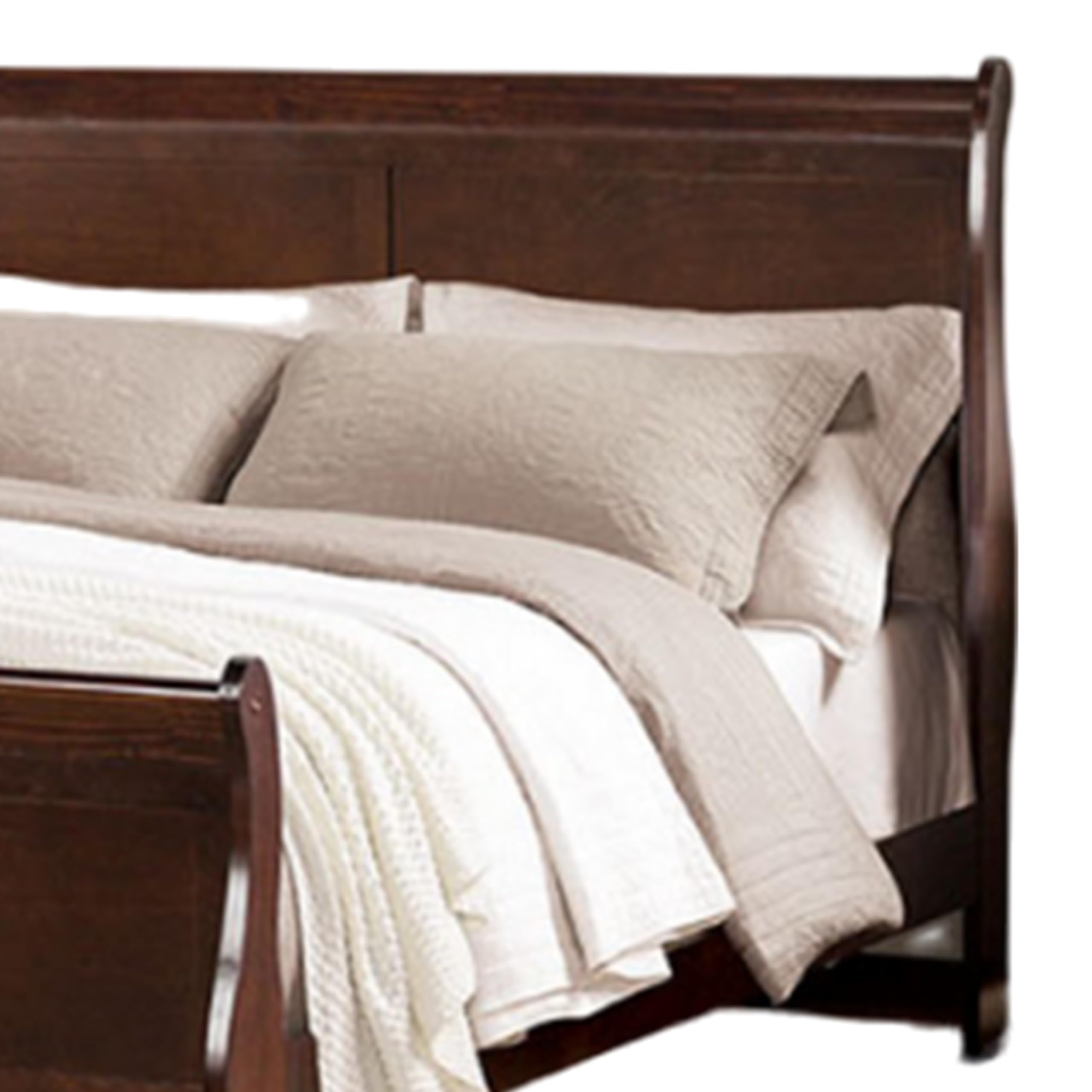 RYLA Full Size Bed, Sleigh Panel Headboard, Dark Cherry Brown Solid Wood
