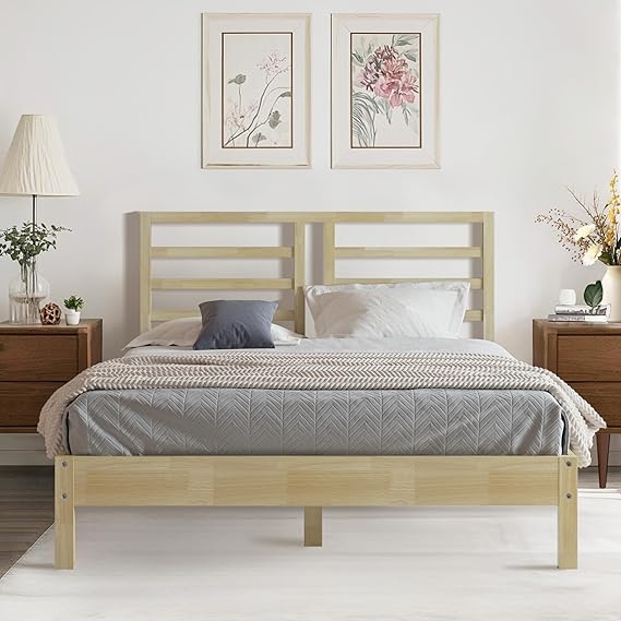 - High-quality Materials: This sturdy bed frame is made of 100% high-quality solid wood, with unique wood grain patterns on each wood slats and headboard. It has 10 solid wood slats and 3 solid center legs, it can hold up to 1000 pounds. the slats reinforce the durability of the platform full bed structure. Make the platform bed frame very sturdy and stable.