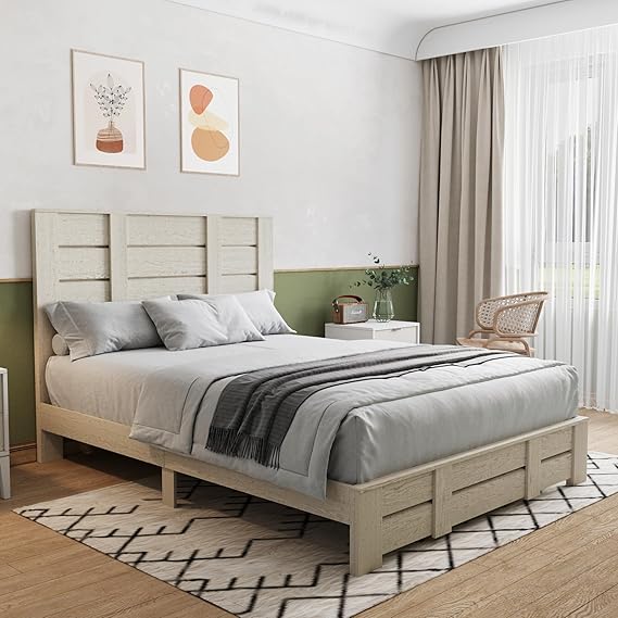 - Retro Walnut Headboard: The platform bed queen size features a retro walnut headboard that brings a vintage charm to your sleeping space. At 43" tall, the headboard offers comfortable back support, making it ideal for reading or lounging in bed.