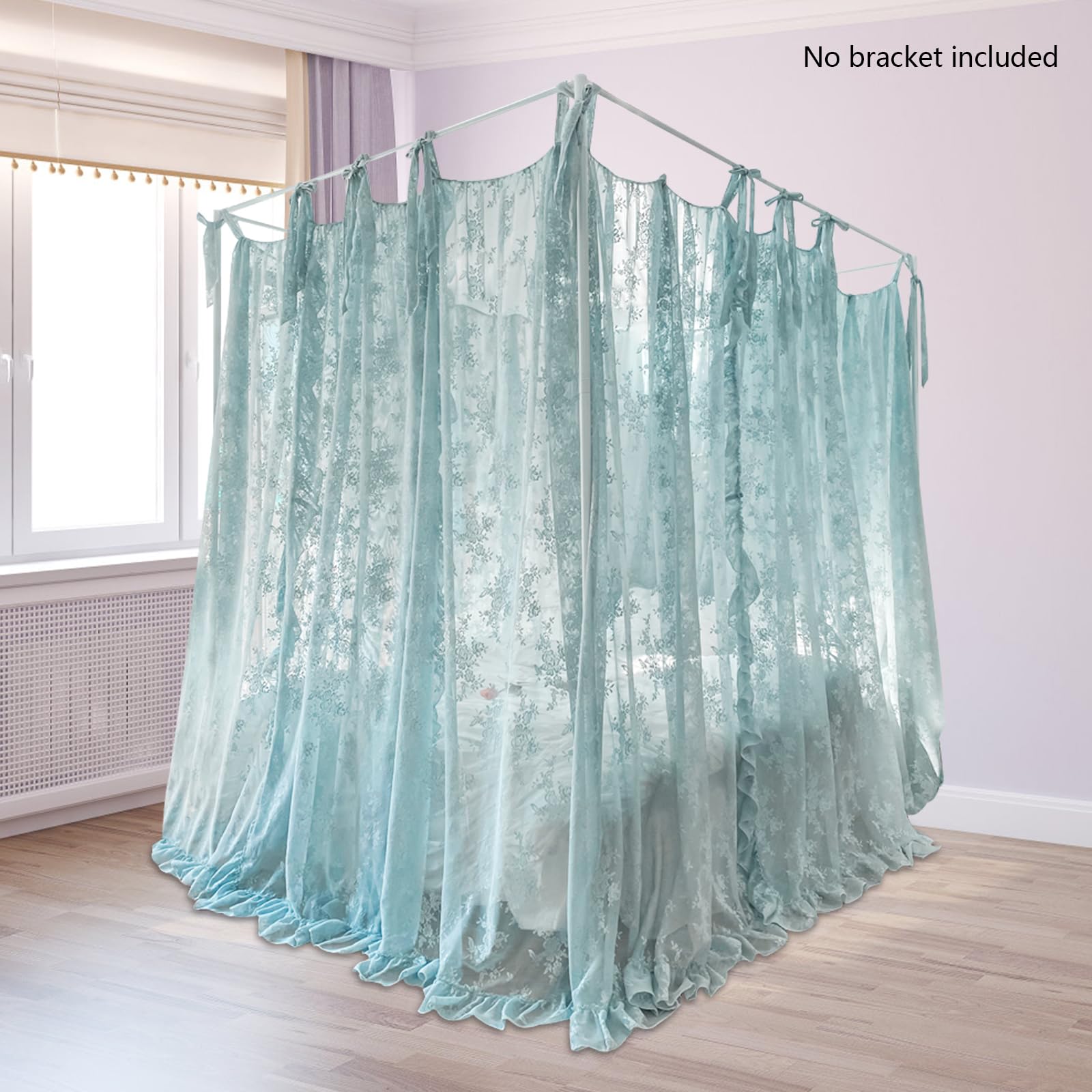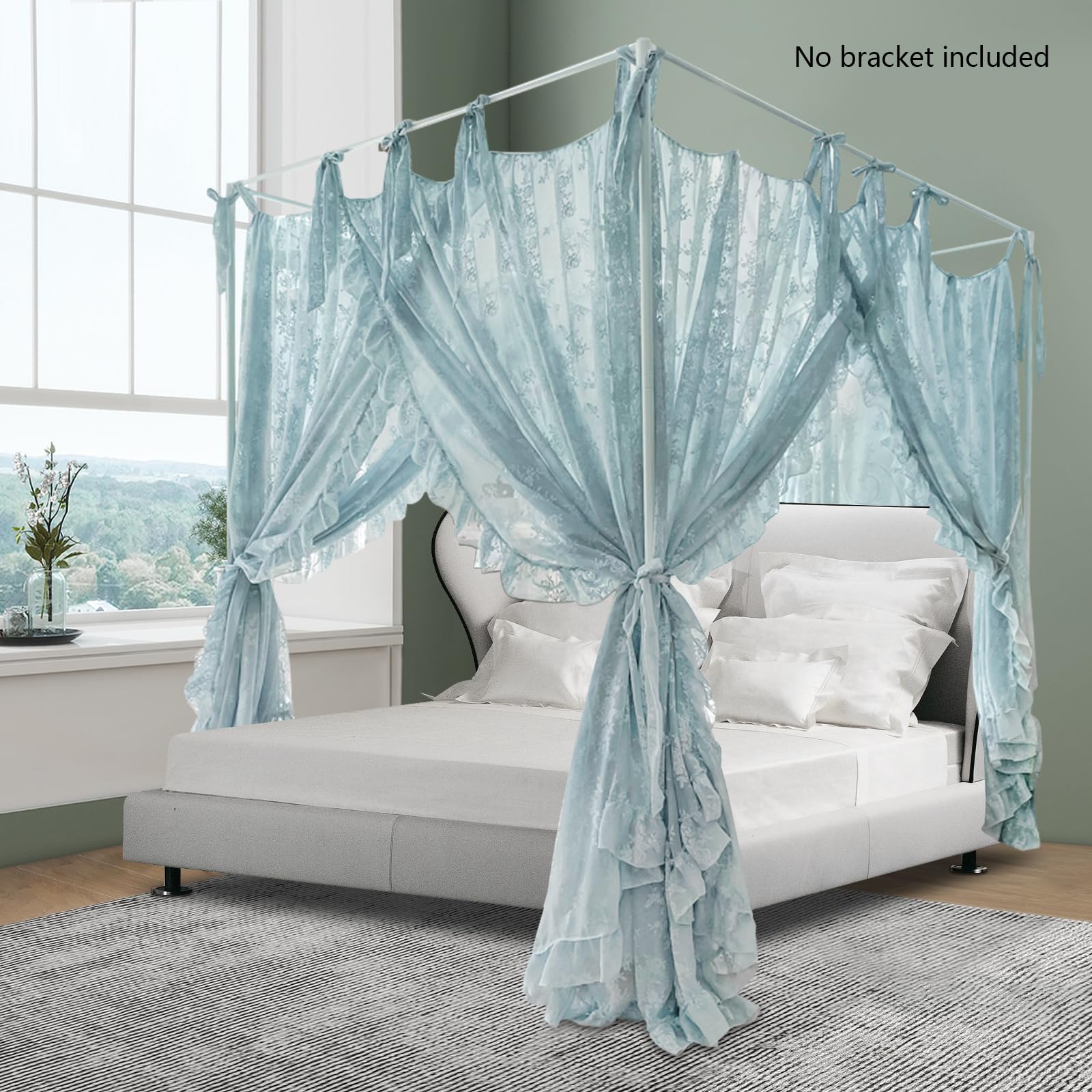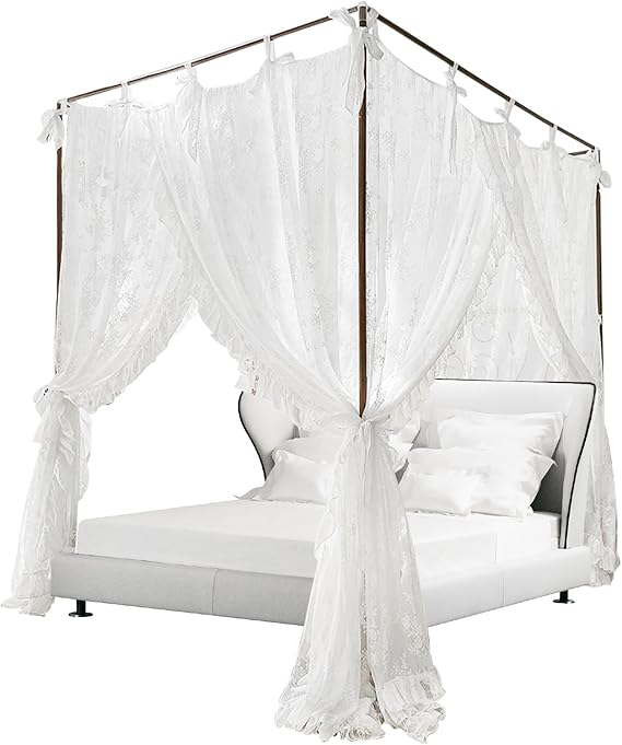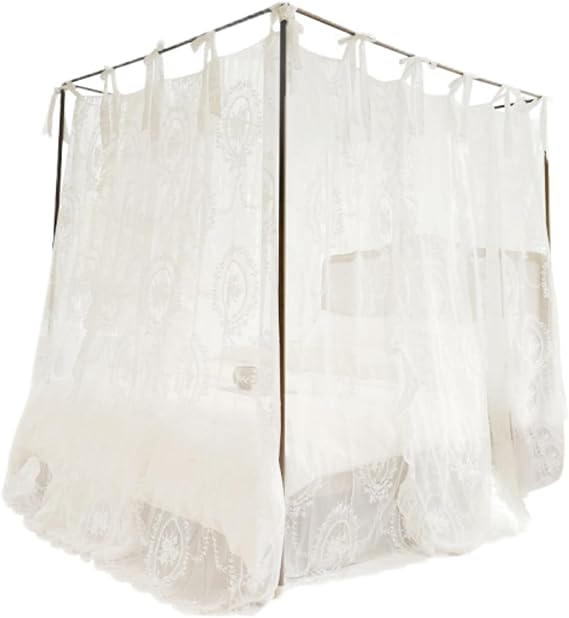 - Lightweight and Easy Installation: At just 6.9 lbs, the canopy is effortlessly installed by one person.Includes decorative lace ties to secure the curtains and complement the floral motifs. Fits standard 5.9x7.2ft beds