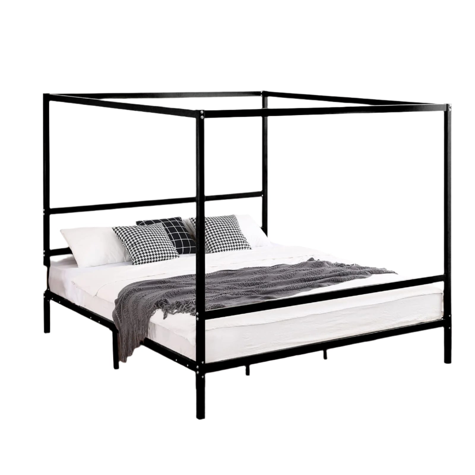 King Metal Bed Frame, Canopy Bed King Size with Headboard, 4 Poster Black Mattress