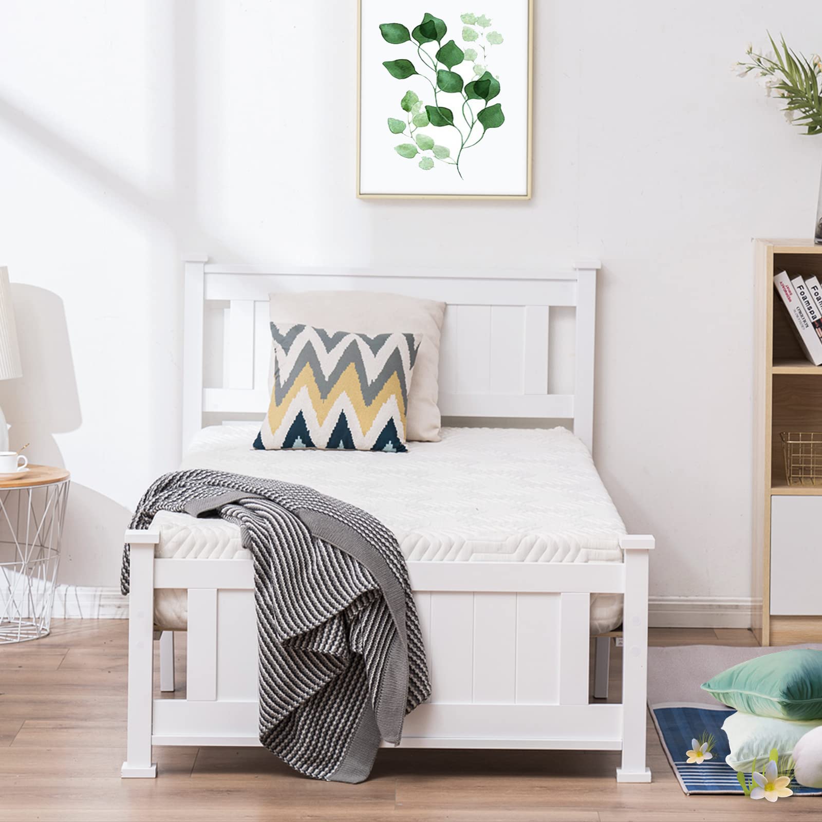 - This bed base made by high quality 100% solid pine wood with head-board and foot-board. Superior craftsmanship gives this twin bed frame for kids an outstanding classic modern figure