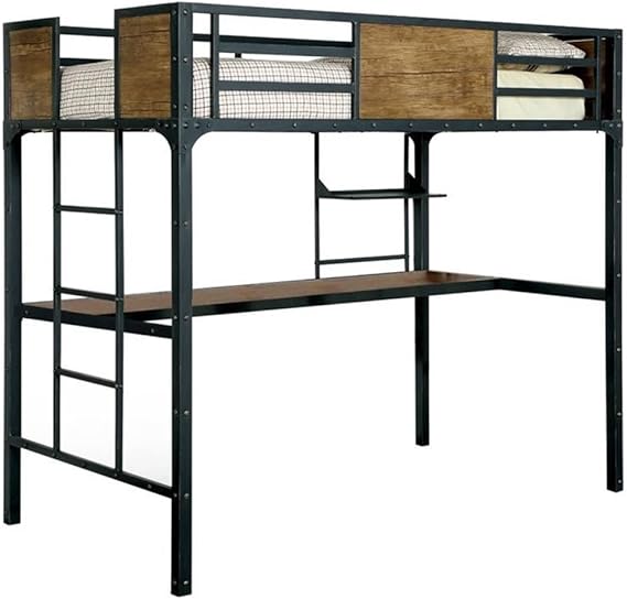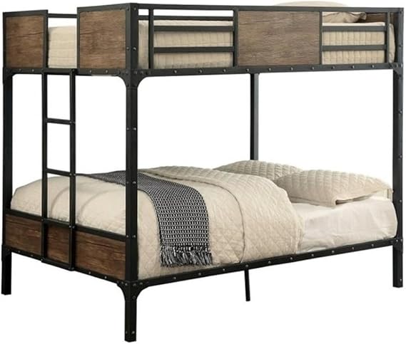 Modern Steel Metal/Wood Full Over Full Bunk Bed in Black