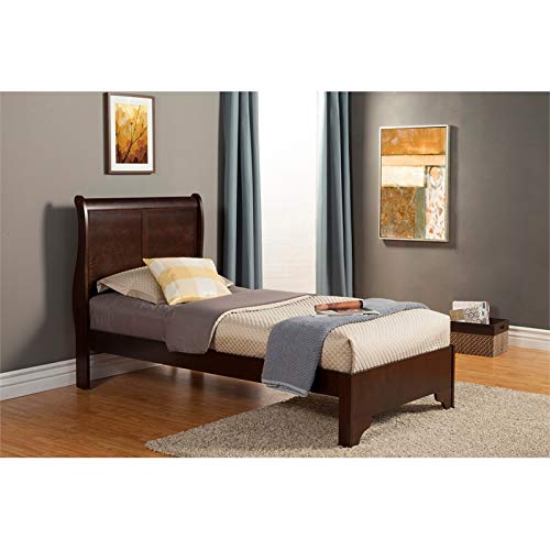 Twin Size Wood Sleigh Bed, Box Spring Required, in Cappuccino (Brown)