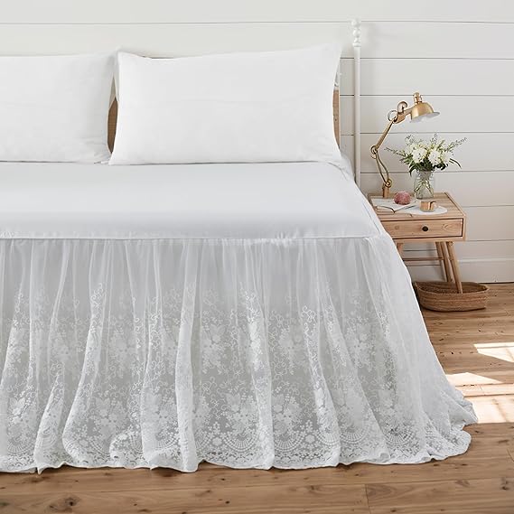 Luxury Cream White Lace Bed Skirt King Size 18 Inch Drop Split Corners Romantic