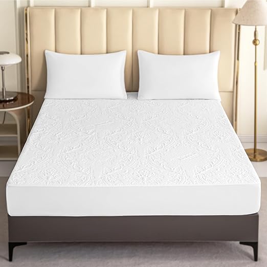 - Secure Fit for Any Mattress: Deep 20-inch elastic skirt grips thick mattresses tightly. Whether it’s a pillow-top or hybrid bed, this protector stays put—no slipping, no bunching, just perfect coverage.