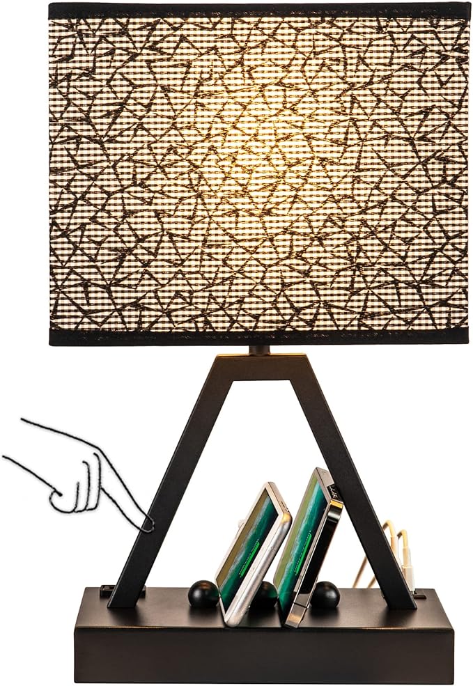 - The table lamp is designed with 3 decorative beads on the lamp base, they can hold your cellphone, tablets or electronic devices when charging, suitable for different thickness of your devices. Not only reduce your space but also keep your desktop neat. The base is made of high-quality metal, can prevent to rust and easy to clean. The ladder-shaped design of the lamp pole shows a sense of elegance and the stable structure can avoid wobbling.