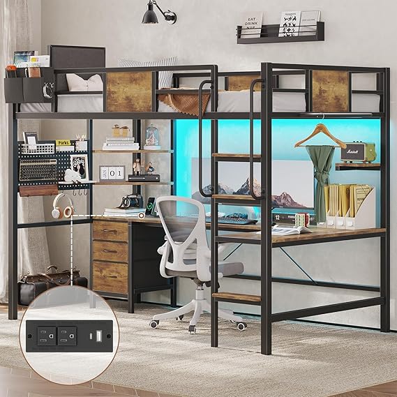 Special Feature | loft bed twin size with Storage Drawer, loft bed twin with LED Lights, loft bed with L-Shaped Desk, twin loft bed with Charging Station, twin size loft bed with Clothes Rail See more |