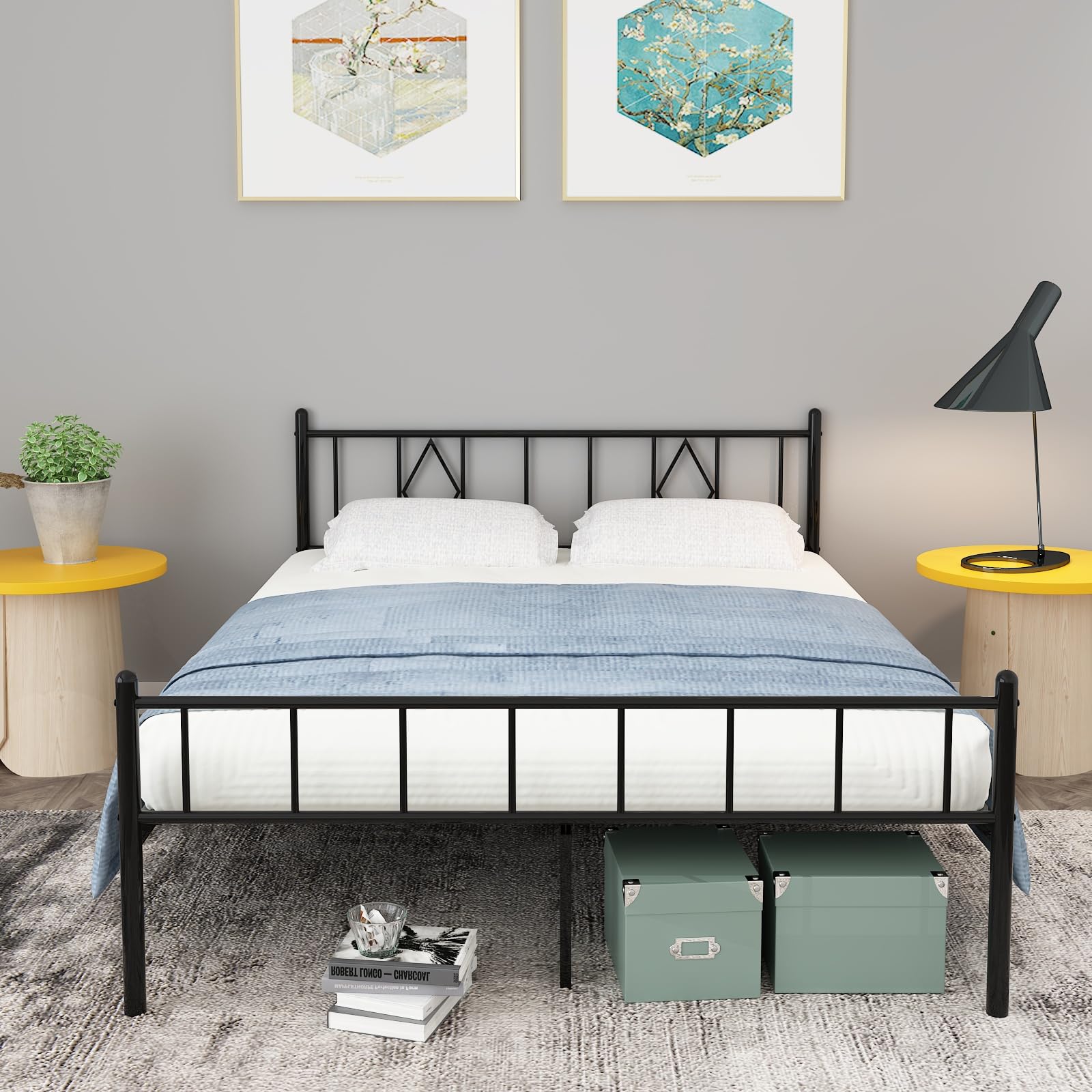 Queen Size 14" Height Classic Metal Platform Bed Frame Foundation