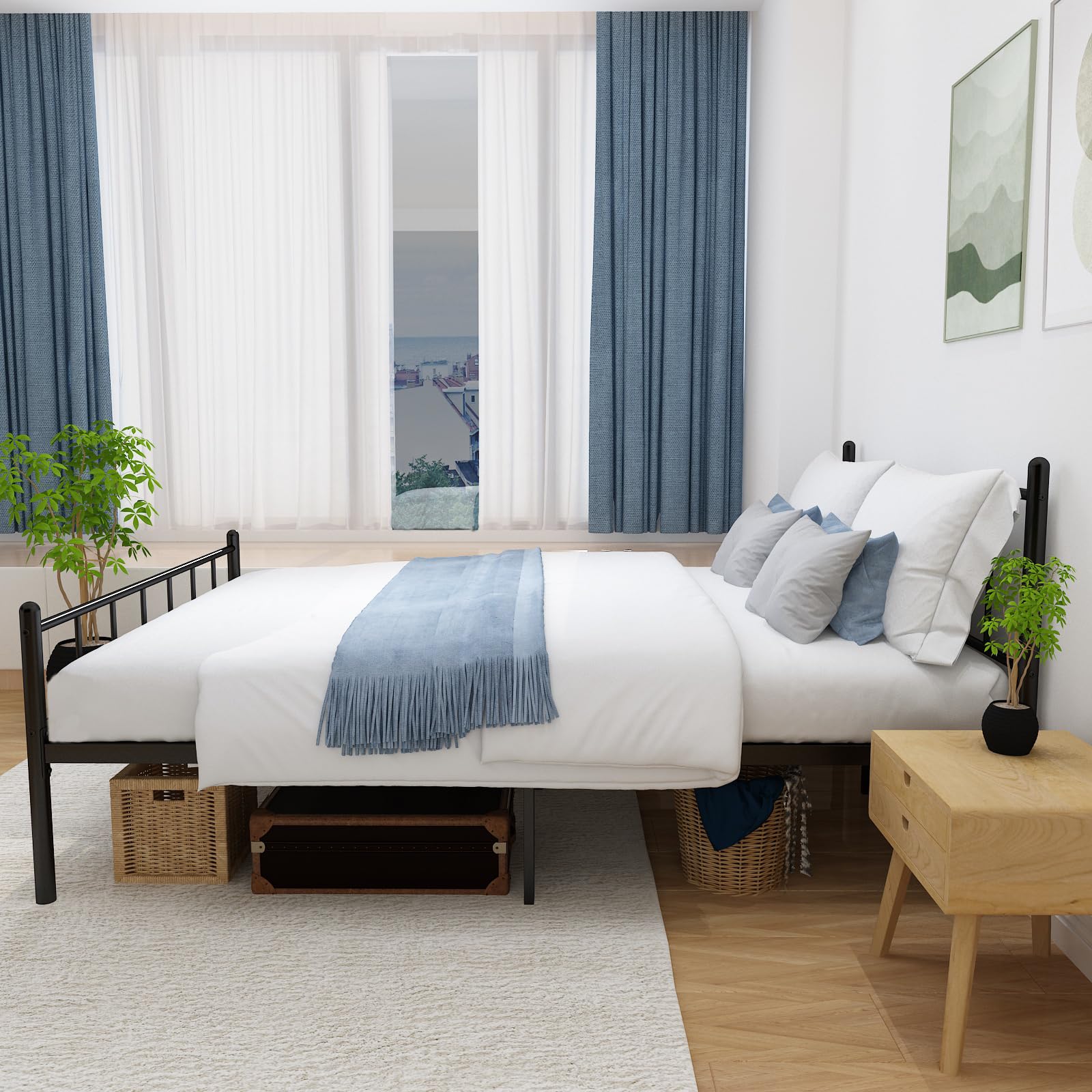 Twin Size 14" Height Classic Metal Platform Bed Frame Foundation with Iron-Art Headboard