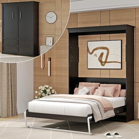 - Comfortable: Equipped with sturdy support bars, it effectively supports the mattress for an ultimate comfort experience. This space-saving bed is perfect for all-day use, especially for small apartments or studios. In the morning, just fold the full size Murphy bed to create a spacious space. At night, unfold the hidden bed for a comfortable sleep.