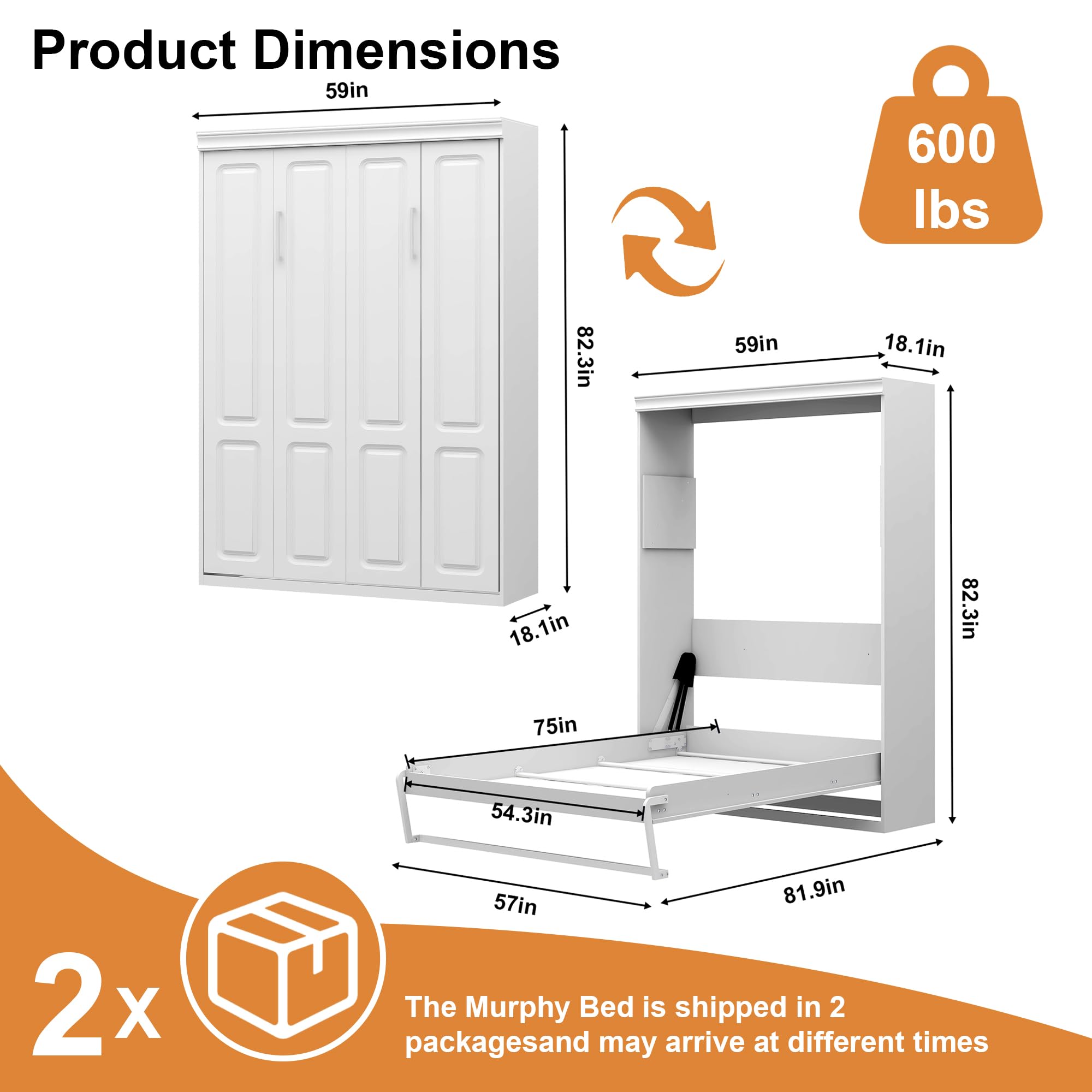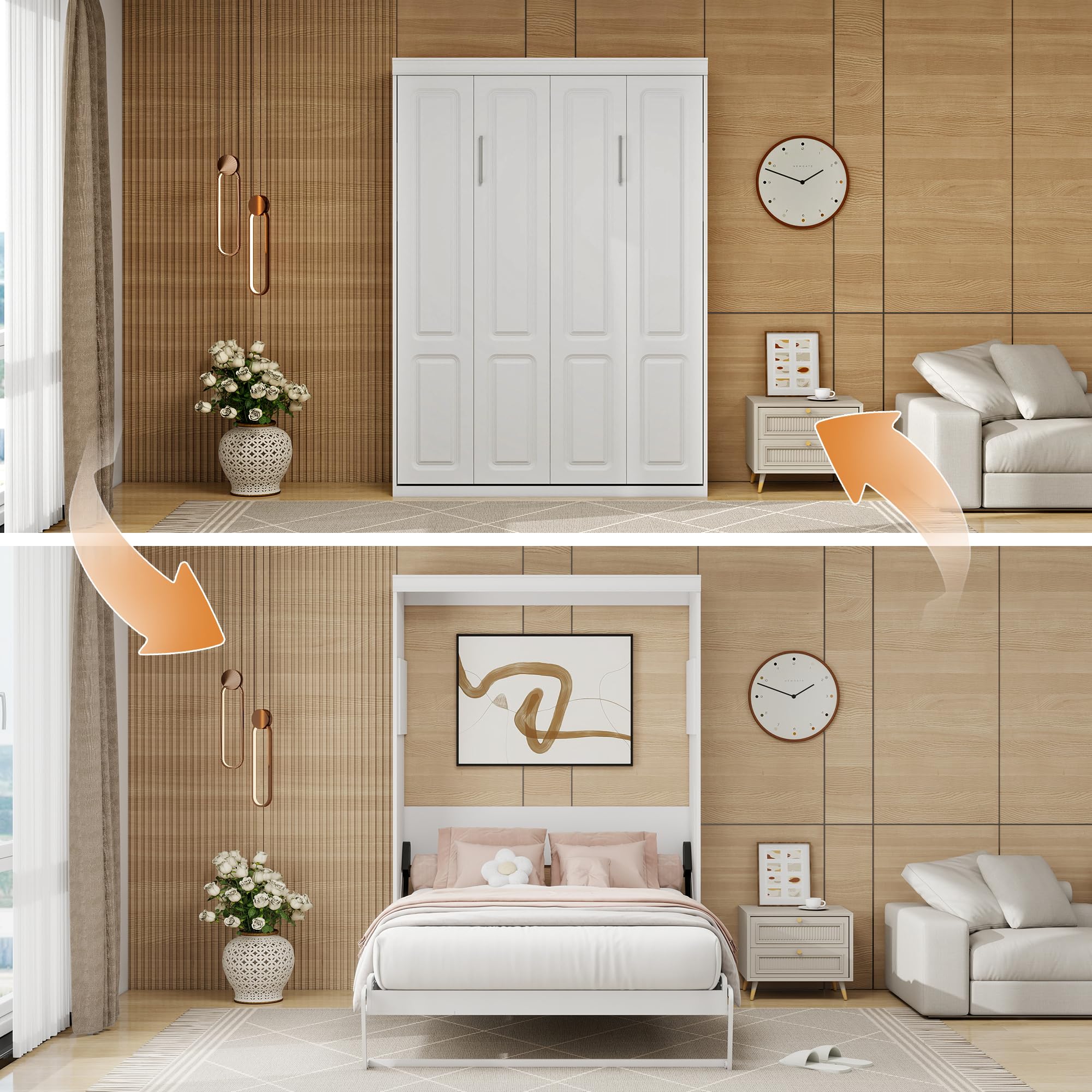 CFITCER Murphy Bed Full - Space Saving Wall Murphy Bed Full Convertible Hidden Bed for Small Apartments, Guest Rooms, Home Offices and Dens.(Mattress not Included) (White)