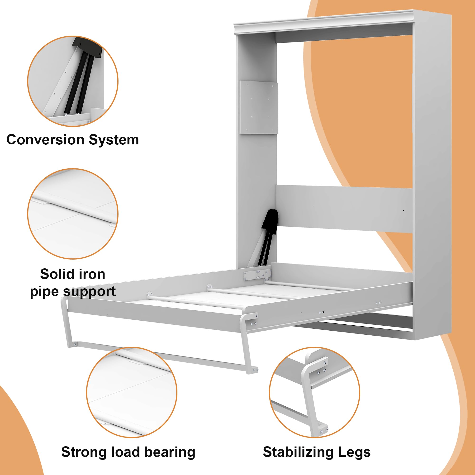 - ✔Efficient Design: The full Murphy bed cabinet is easy to use; just pull the handle to flip the support legs to the ground. When planning your space, please allow 30 to 36 inches of space around the open bed for easy access.