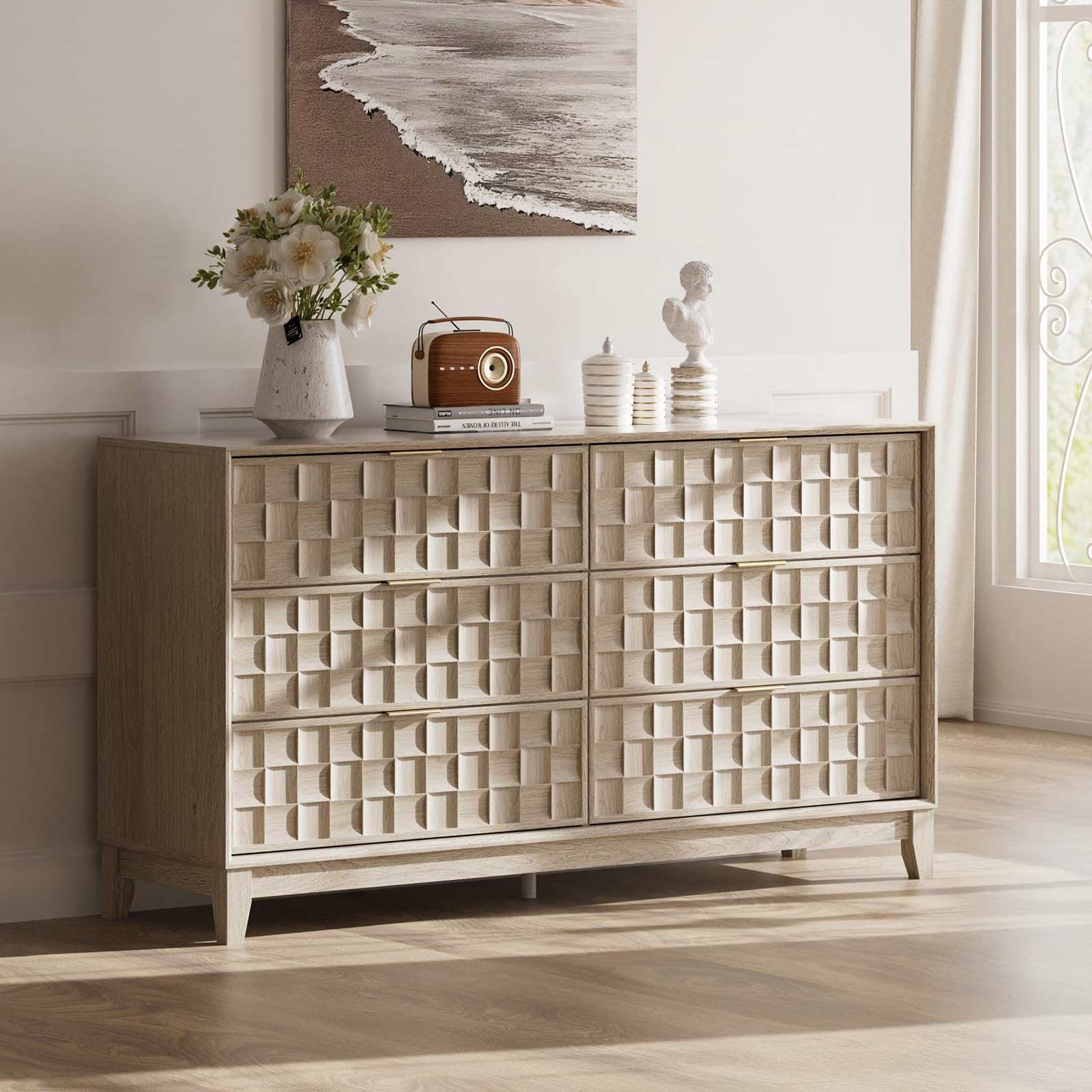 Fluted Storage Cabinet with 6 Drawers, Buffet Sideboard Cabinet