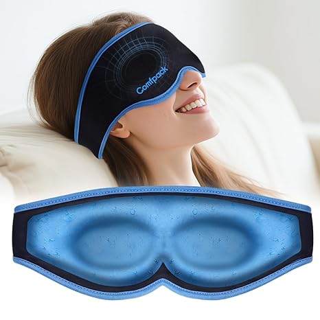 - Sleep Mask with Heat / Cold Therapy - Comfpack cooling eye mask is filled with a ultra soft gel, ensuring long-lasting coolness and soft fit. For cold therapy, simply freeze the mask for 1-2 hours, helps reduce puffiness, swelling, and inflammation around the eyes. It can also relieve migraines and sinus discomfort. For hot therapy, microwave for 20 seconds to provides relaxation by easing muscle tension, improving blood circulation, and promoting a calm, restful sleep.