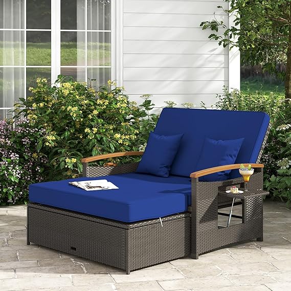 - [Soft Cushion & Pillows] Indulge in ultimate relaxation with your friends or family on this double chaise lounge, featuring soft cushions and throw pillows for luxurious comfort. The removable and washable cushion covers offer added convenience, ensuring effortless daily cleaning. Please note to avoid prolonged rain exposure for extended use time.
