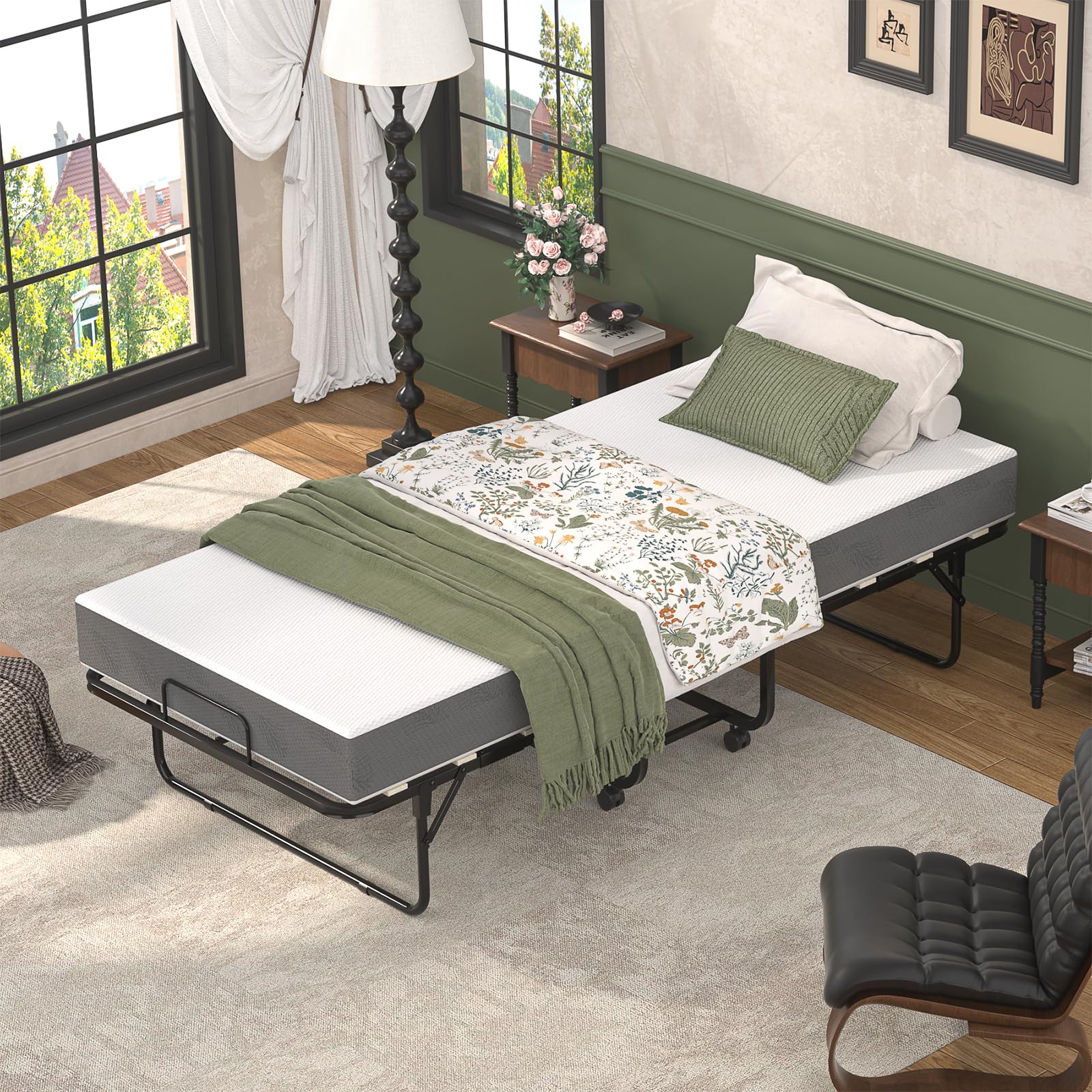 Folding Bed with Mattress, 75" x 31" Cot Size Frame, Portable Rollaway