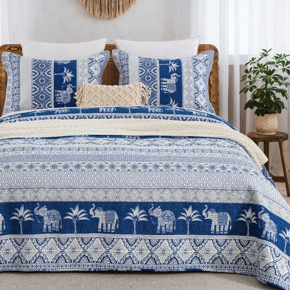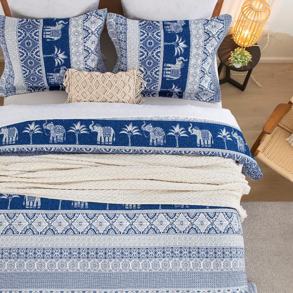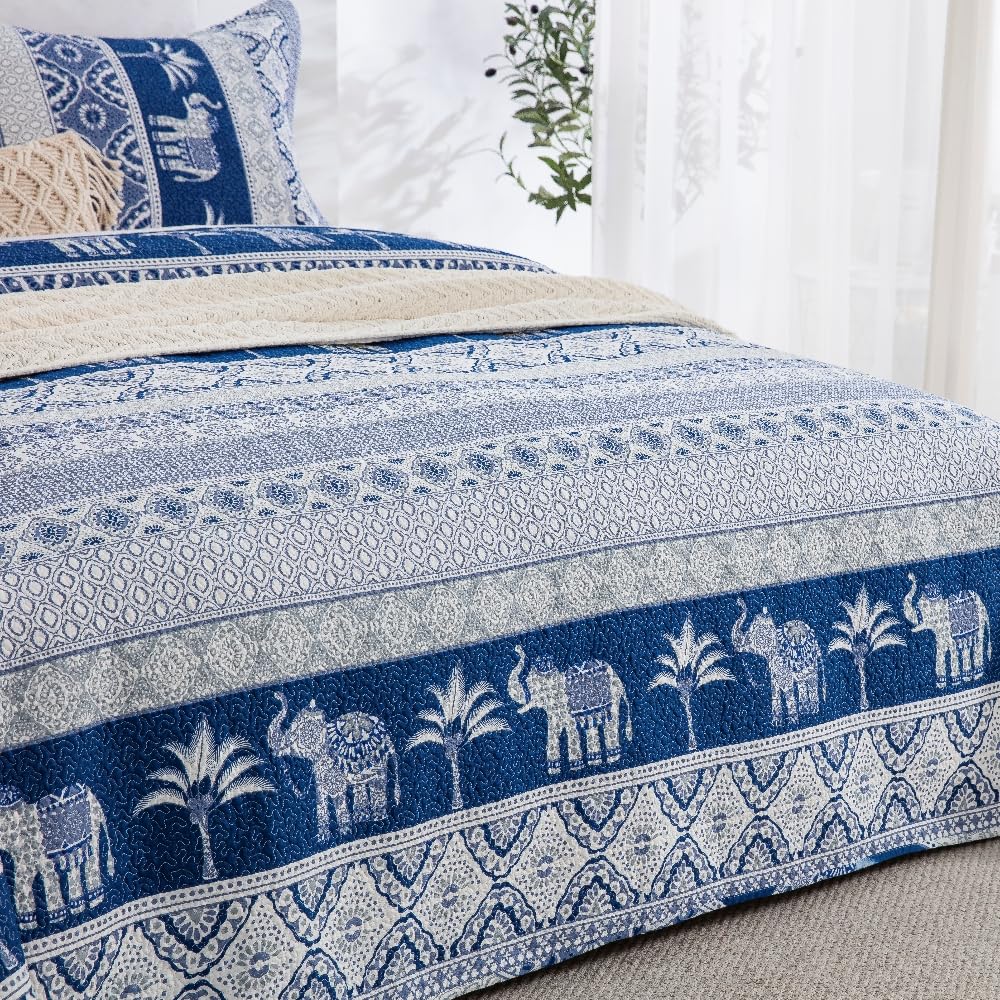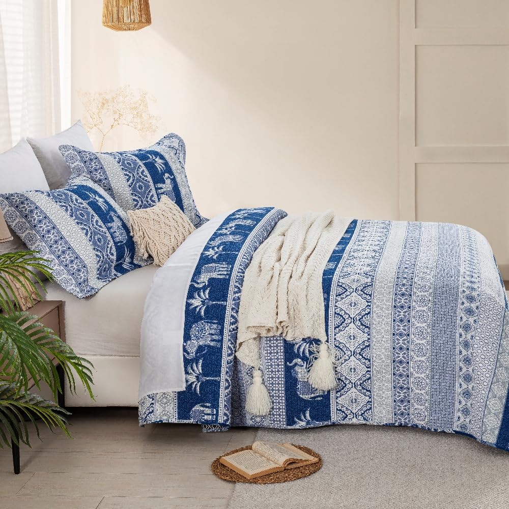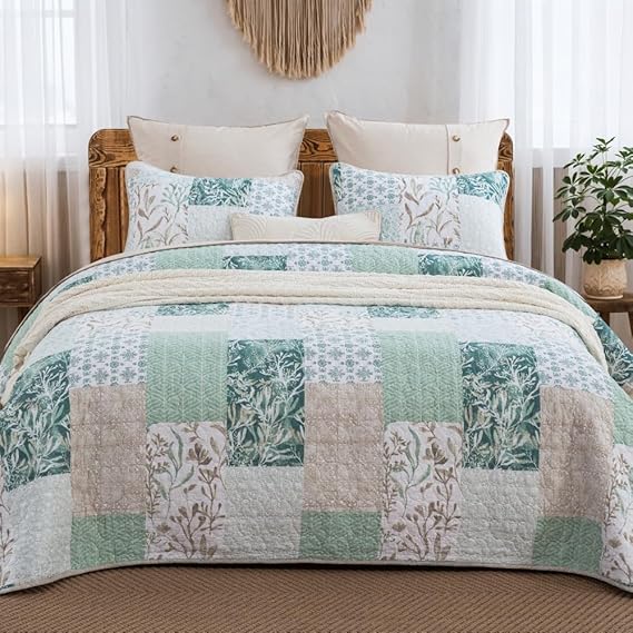 100% Cotton Quilt Set Queen Size, Farmhouse Printed Bed Coverlet Reversible Bedspread