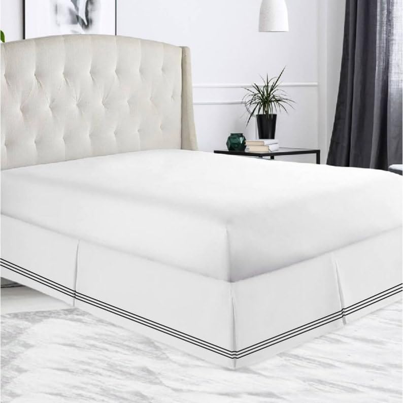 5 Pcs Sheet Set with Pleated Bed Skirt Vertical 3 Line Embroidered Matching Thread Extra