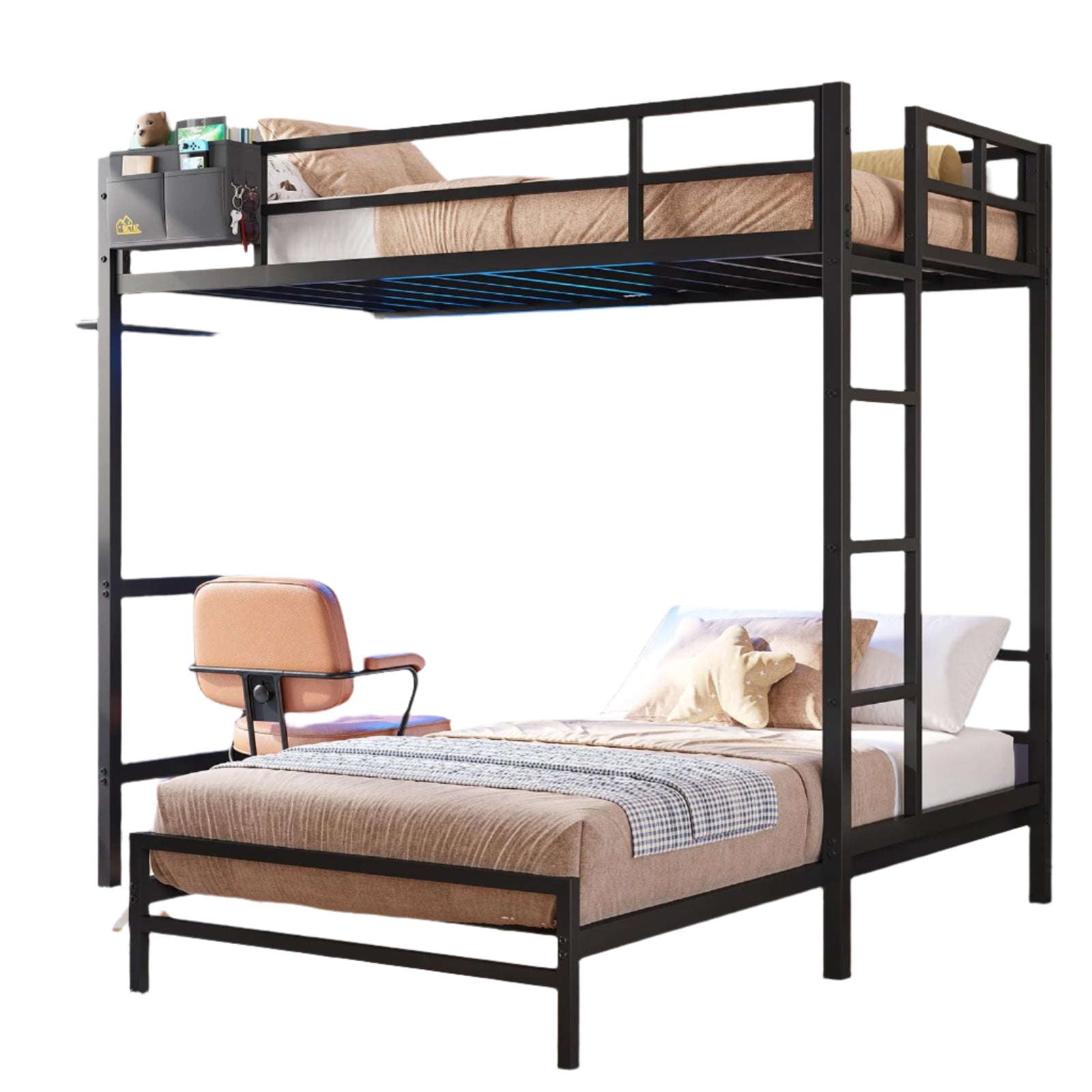 Bunk Bed Twin Over Twin Size with Desk and Charging Station L-Shaped Metal Bunk Bed