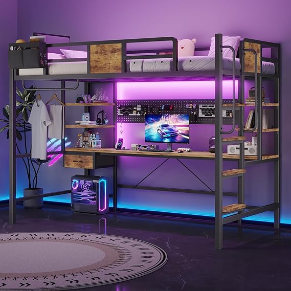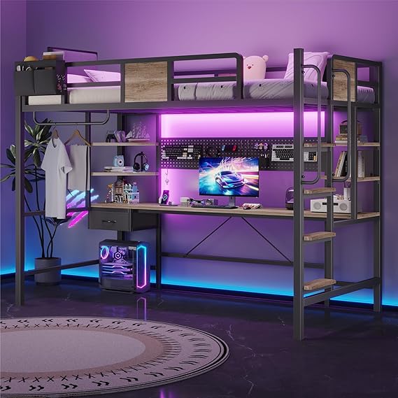 Special Feature | Loft Bed with Adjustable Stairs,Loft Bed with Widened Foot Pedals, Loft Bed with Desk, Loft Bed with 5 Storage Drawer, Loft Bed with Space Saving, Noise Free, No Box Spring Needed, Loft Bed with LED Lights and Charging Station See more |