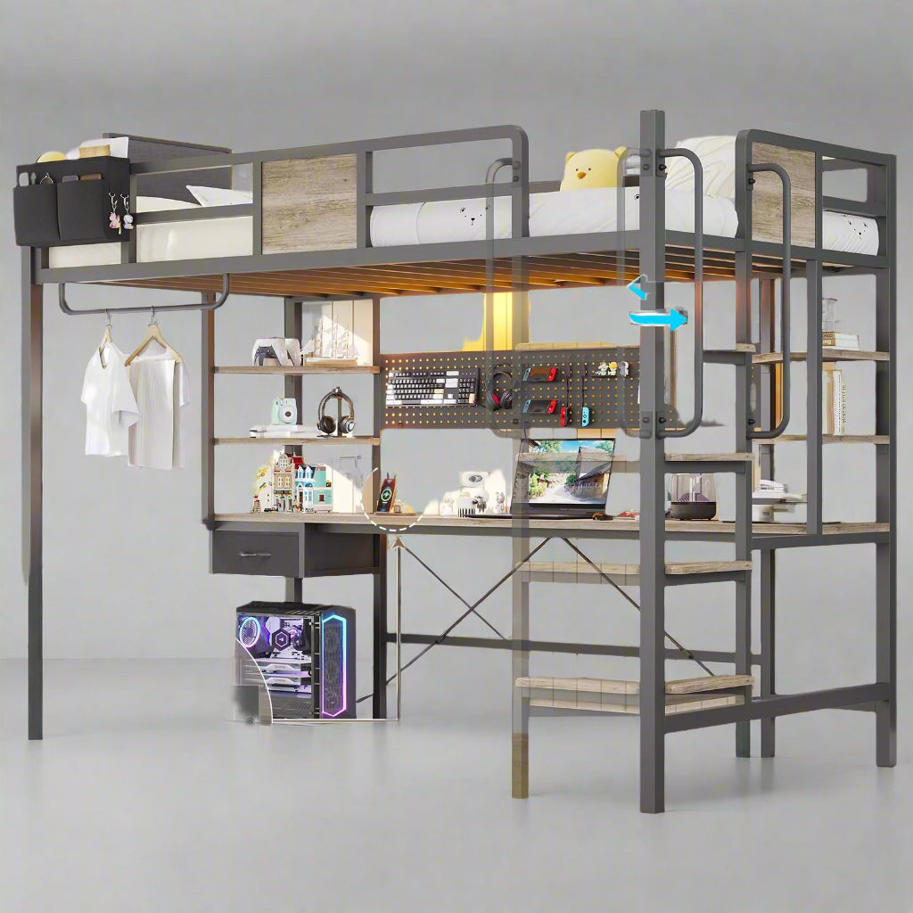 - Bunk Bed with Desk:Transform the space below this twin loft bed with desk into a powerhouse productivity zone. It boasts a spacious workstation desk, integrated power outlets), and fabric storage drawers. The pegboard keeps supplies handy, making this bunk bed with desk perfect for homework, hobbies, or work