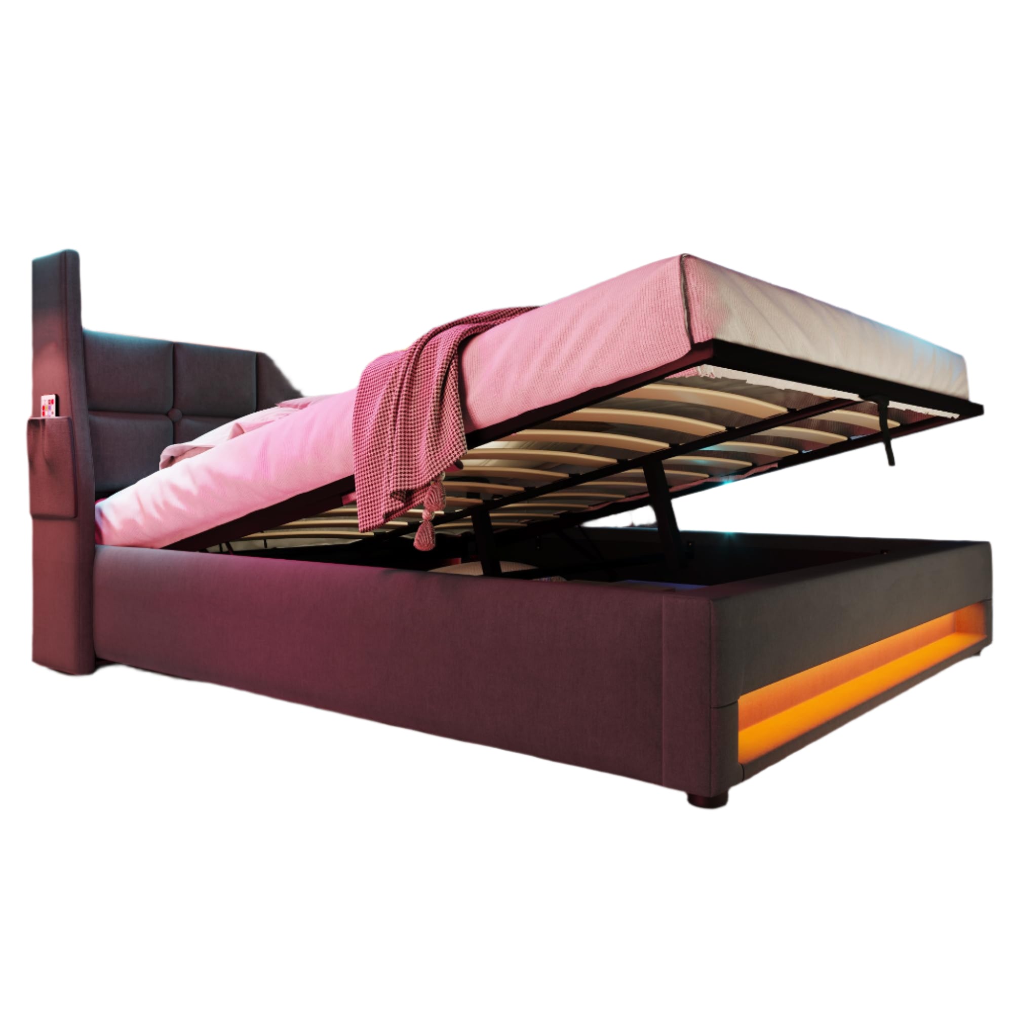 - Flexible and spacious storage: Experience ultimate convenience with our bed's versatile features. Keep your cell phones and tablets within reach on the shelf, while utilizing the hydraulic system for under-bed storage of large items. Additionally, enjoy easy access to magazines or remote controls with the convenient side pocket.