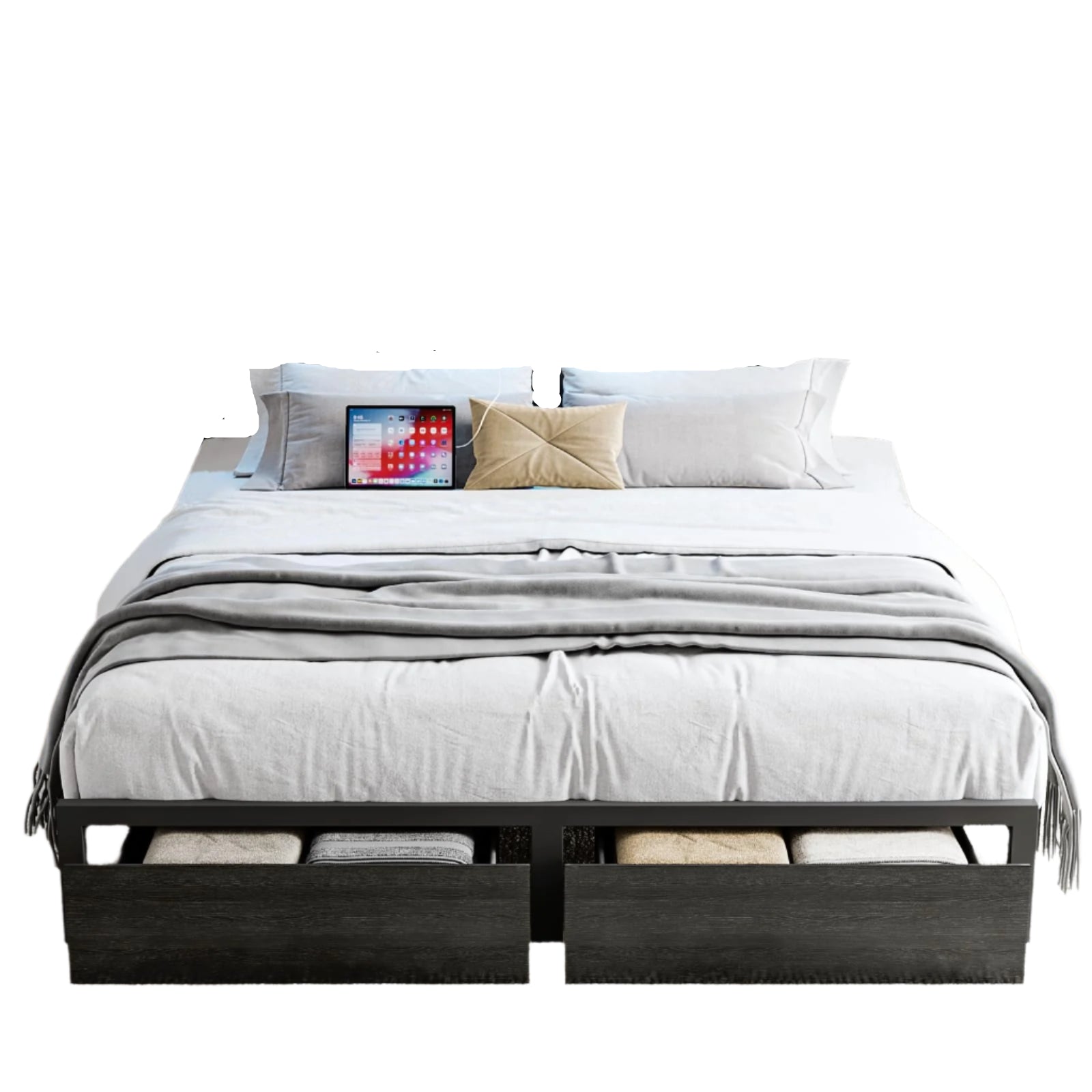 Size Black Bed Frame with 4 Storage, Upholstered Velvet Platform Bed Frames
