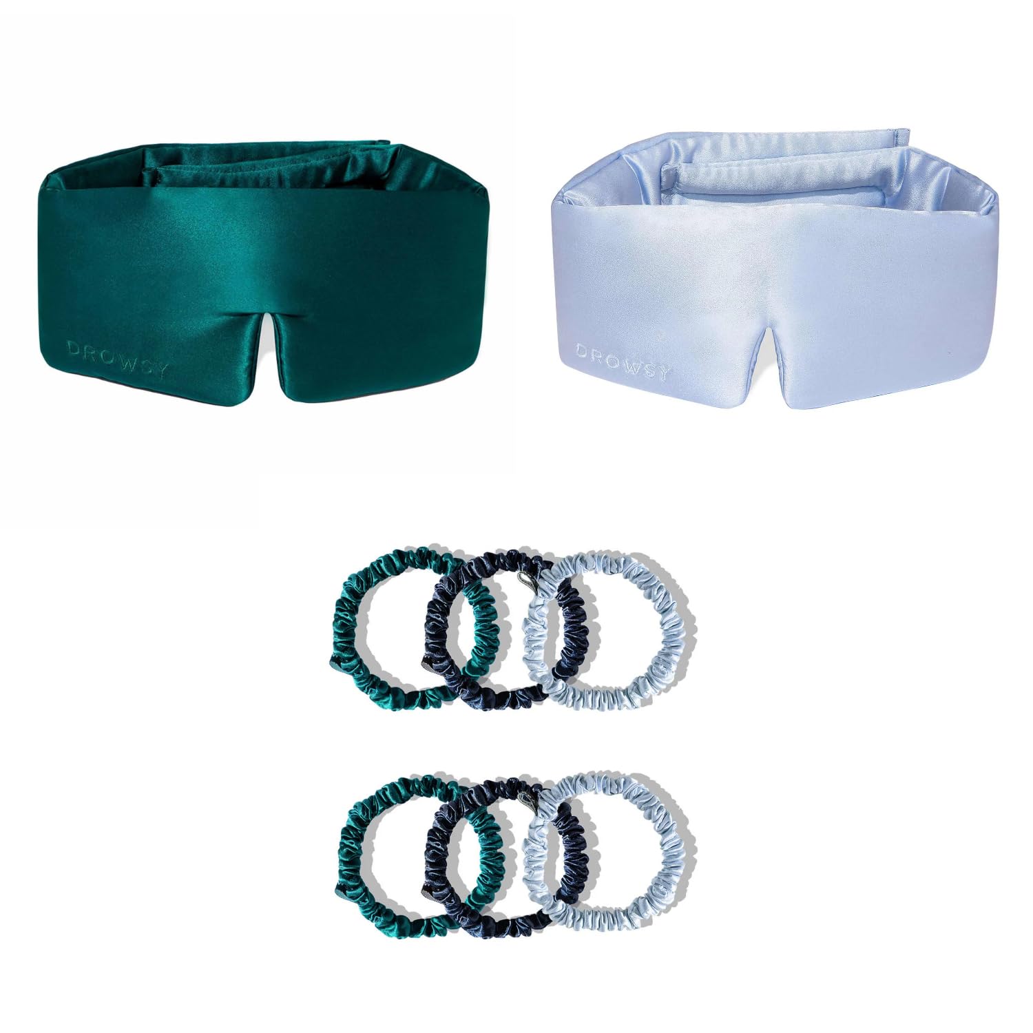 Hers & Hers Gift Set - 2 Luxury Silk Sleep Masks & 6 Silk Scrunchies