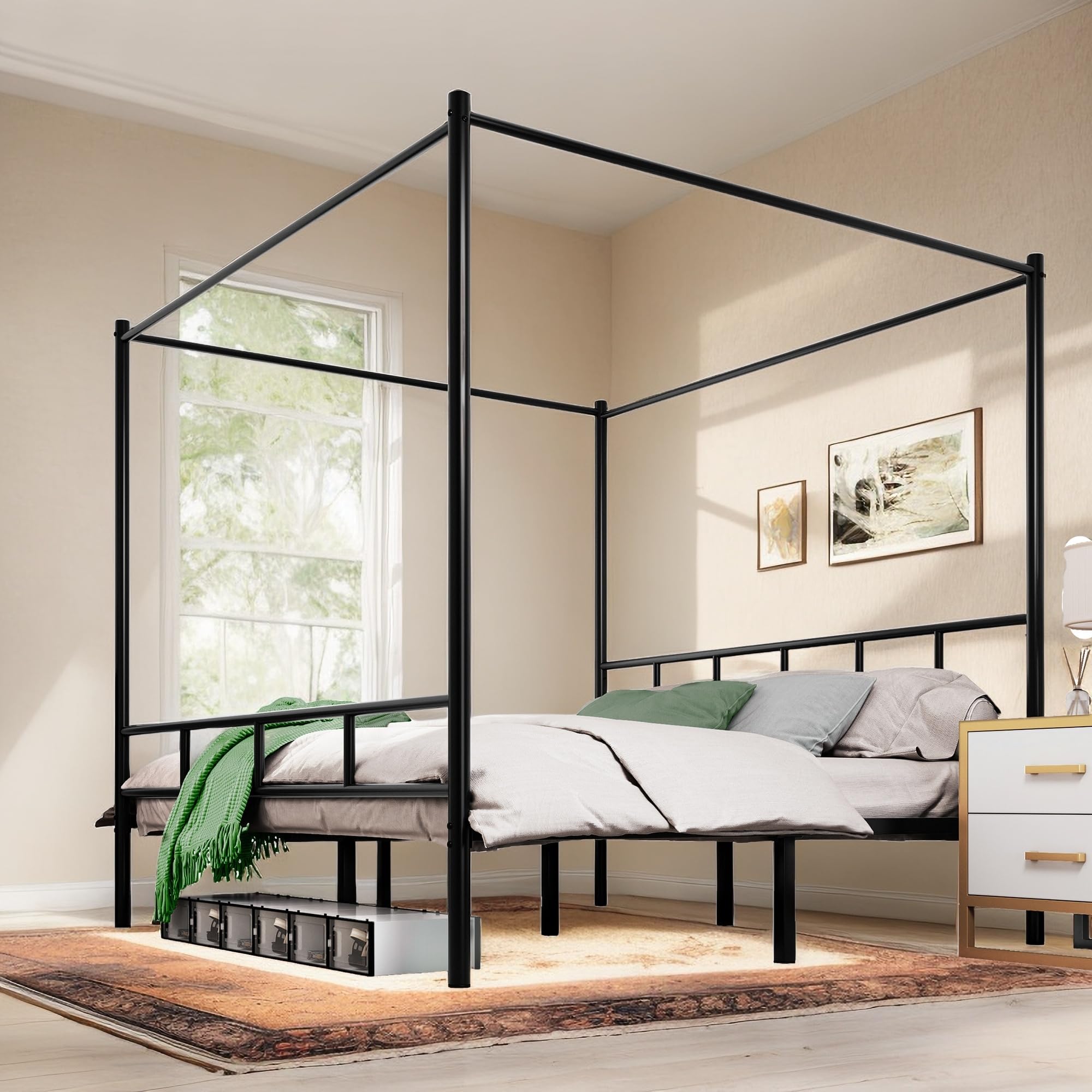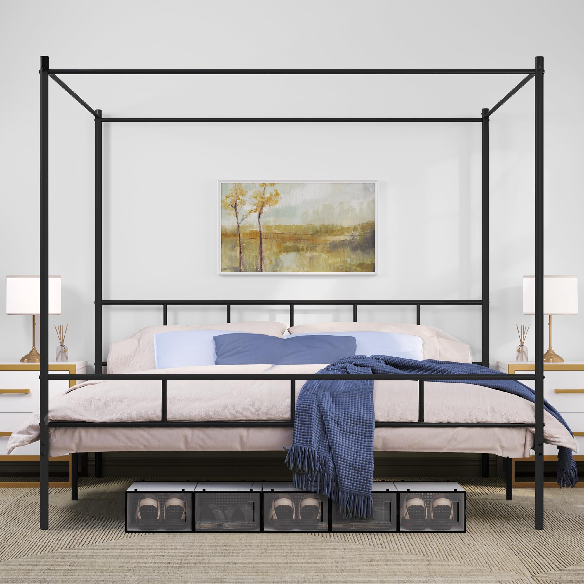 King Size Canopy Bed Frame, Metal Bed Frame with Four Posters