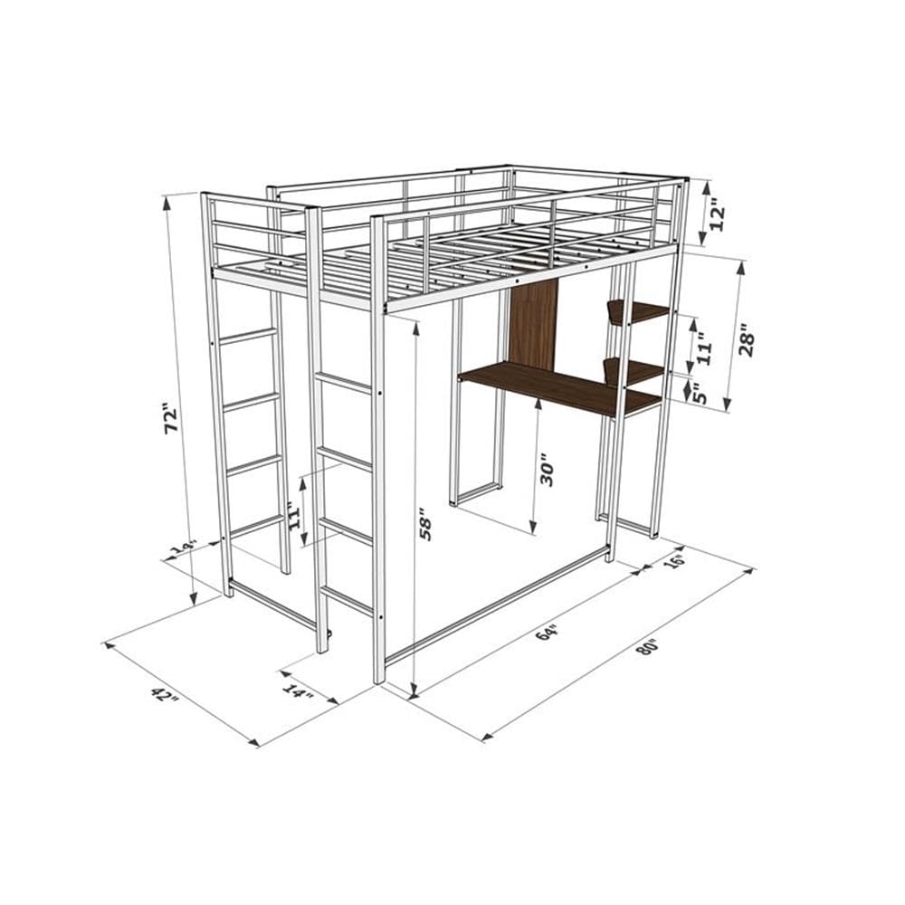 Buckland Twin Loft Bed – One Metal Bed, a Table Top, 2 Book