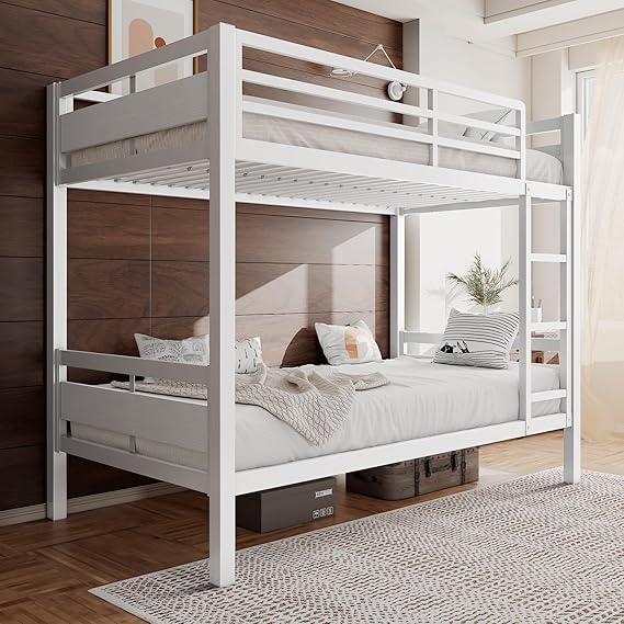 Bunk Bed Twin Over Twin, Heavy Duty Metal Bed with Ladder