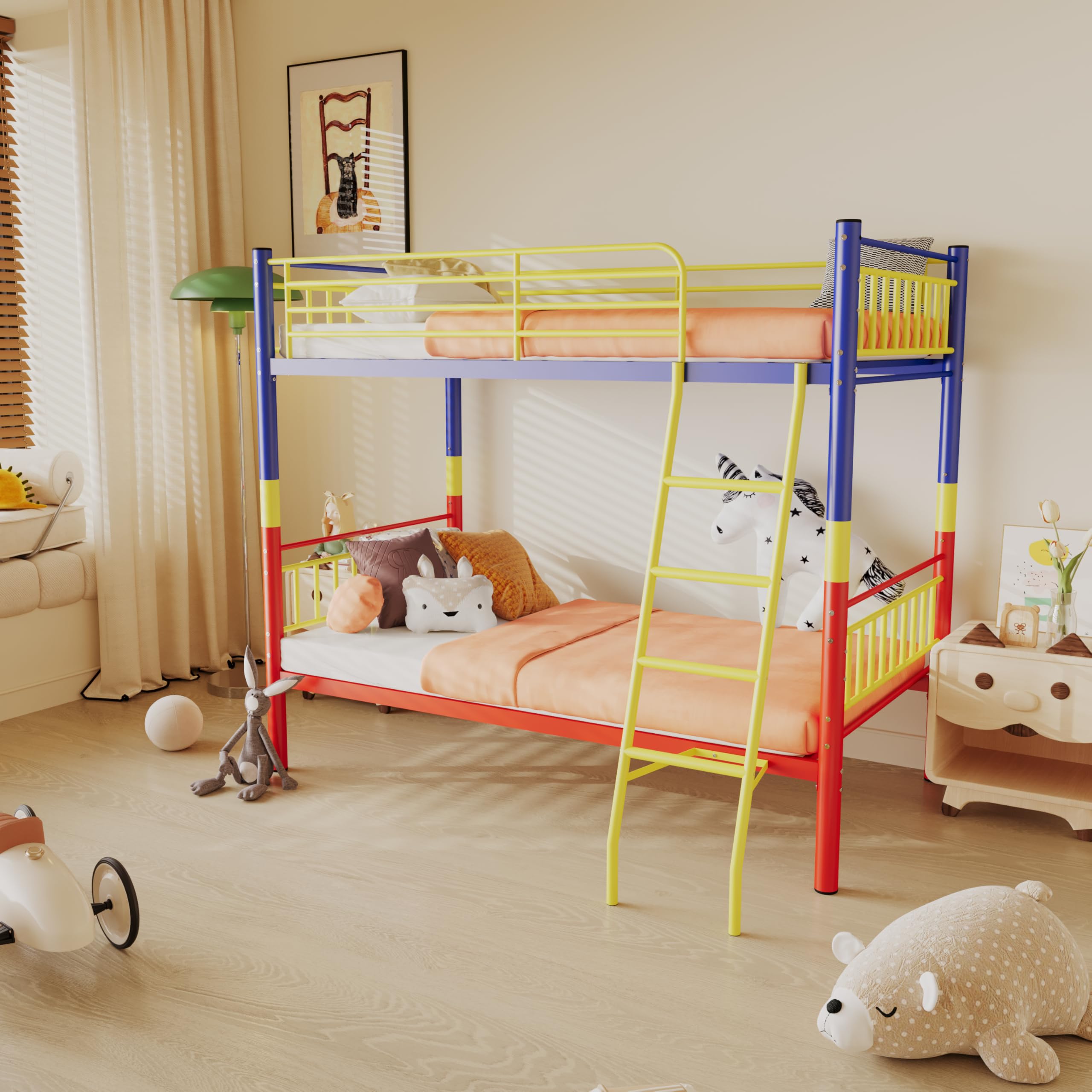 Metal Bunk Bed Twin Over Twin,Loft Bed with Removable Ladder and Full-Length